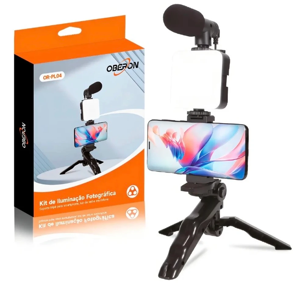 é uma solução compacta "4 em 1" projetada para criadores de conteúdo, videomakers e fotógrafos que buscam praticidade em produções móveis. O conjunto foca em melhorar simultaneamente a qualidade visual e sonora em gravações com smartphones ou câmeras leves