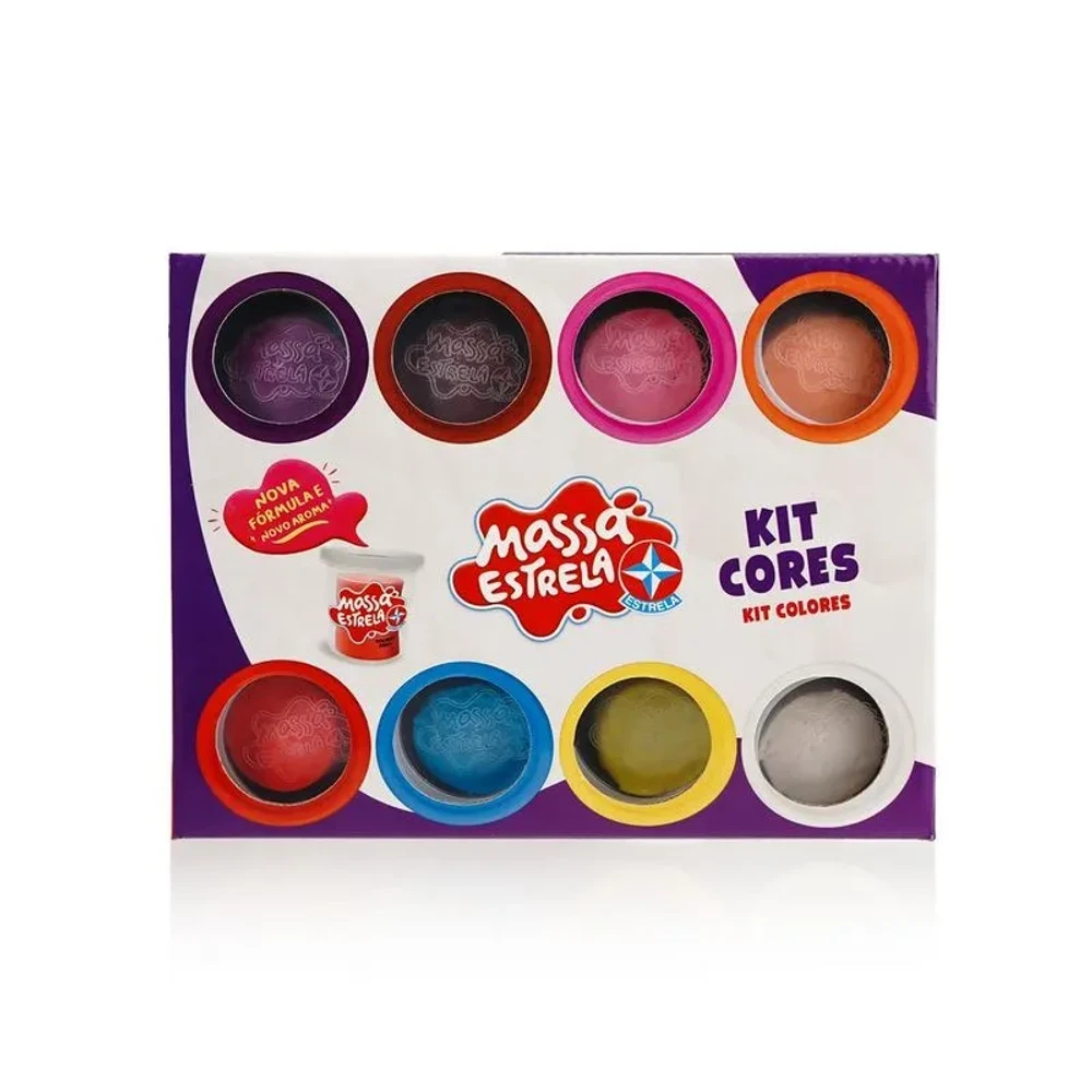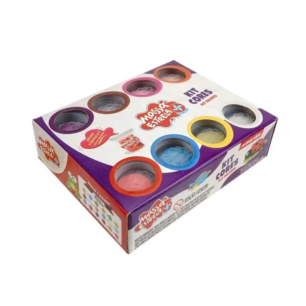 Um festival de cores para soltar a criatividade! Com o Kit de Massinha Cores Divertidas da Estrela, a criança pode explorar sua imaginação misturando tons e criando formas únicas. São 8 potes com 50g cada, com massinhas maleáveis e fáceis de modelar. A embalagem acompanha sugestões de formas para inspirar as primeiras criações.