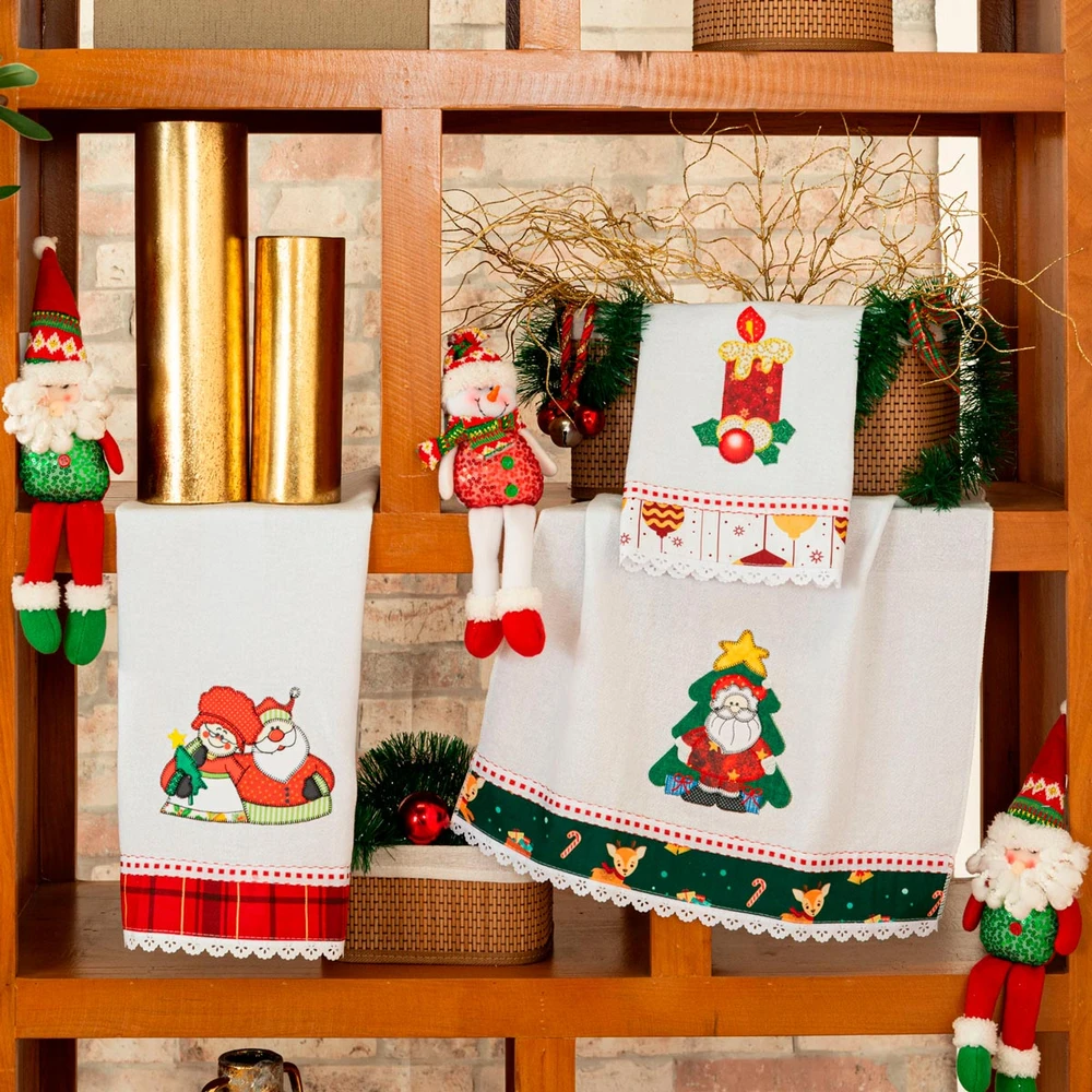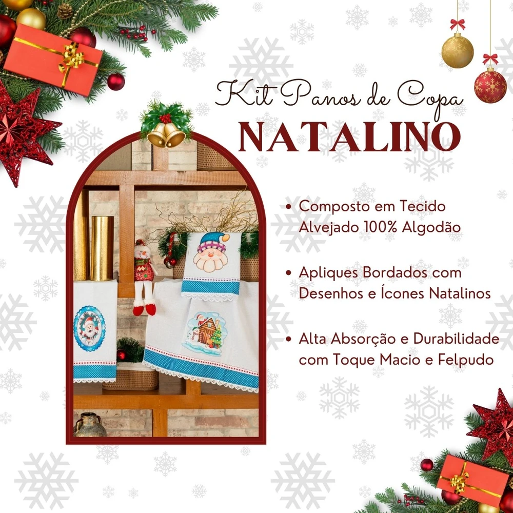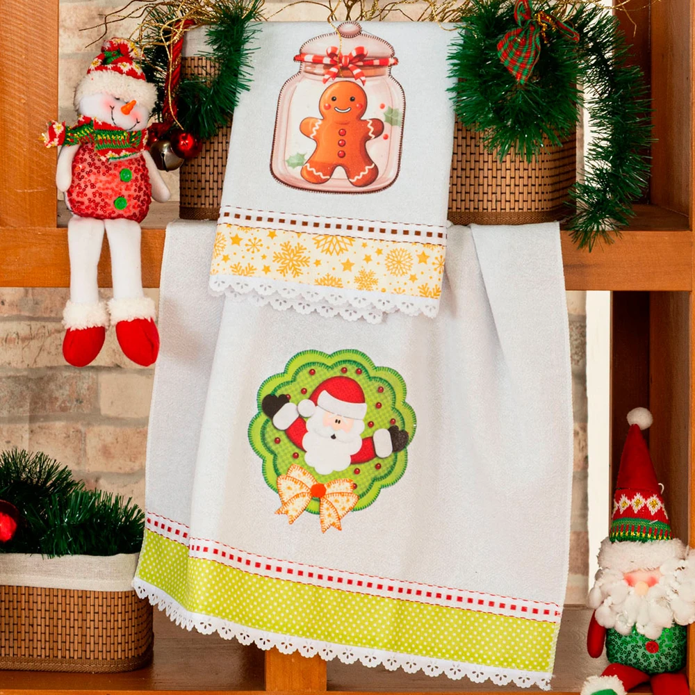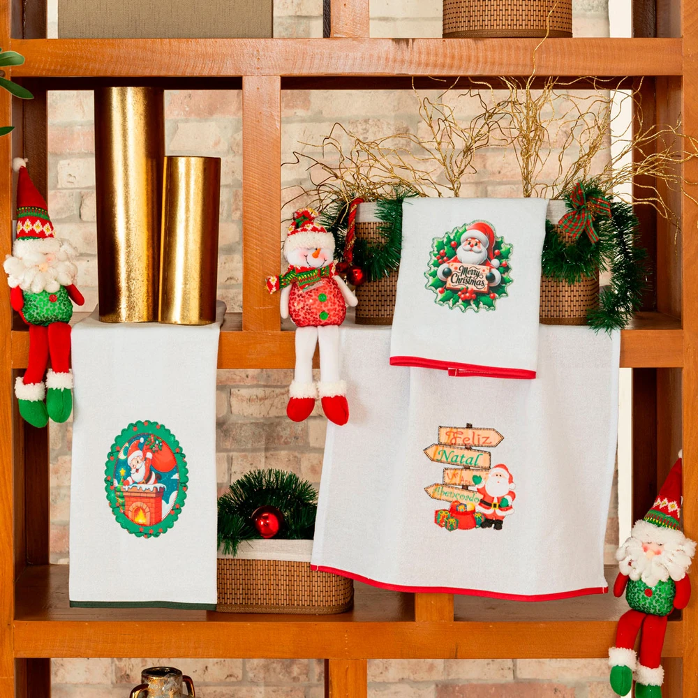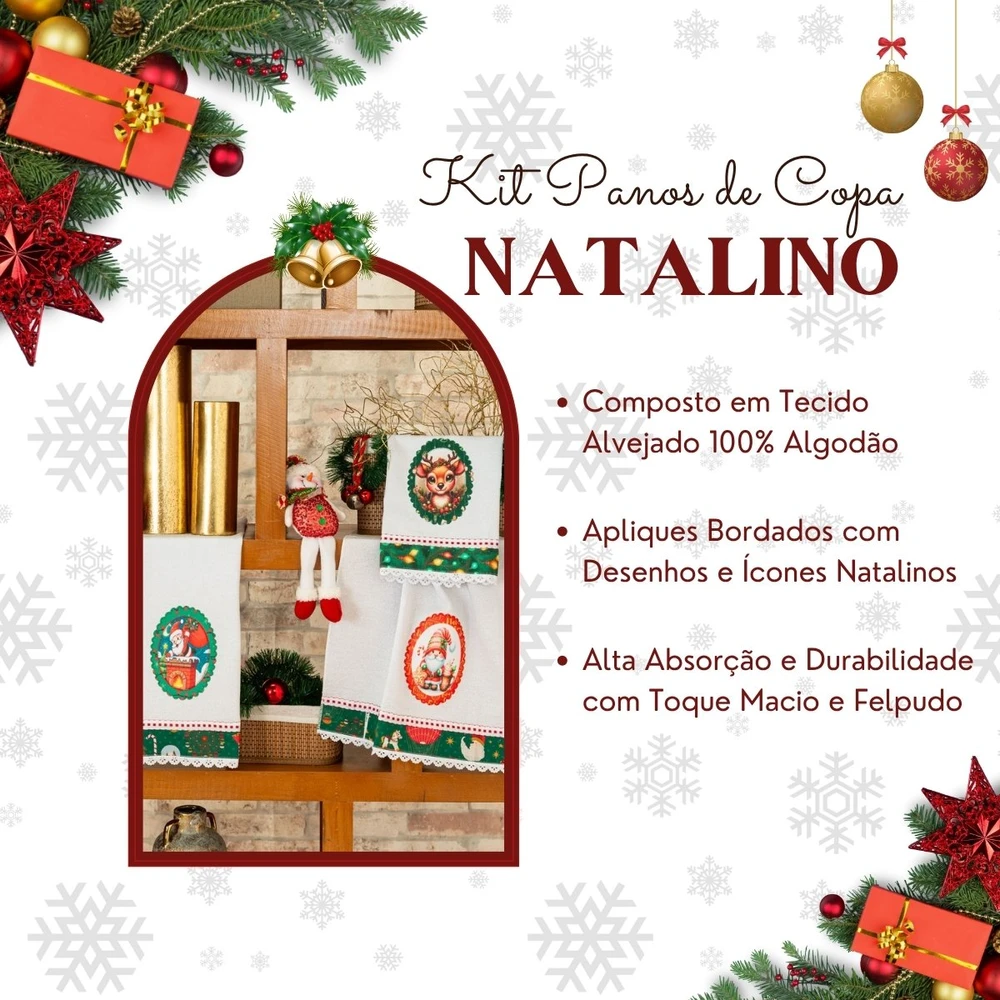 Traga a magia e o calor do Natal para a sua cozinha com este encantador Kit de Panos de Copa Natalinos. Este conjunto é a união perfeita entre funcionalidade e decoração, ideal para a época mais festiva do ano. O jogo é composto por 3 peças, todas em um tamanho excelente de 66cm x 45cm, garantindo alta absorção e praticidade no dia a dia. Confeccionados em tecido alvejado 100% algodão, eles possuem um toque macio e são extremamente duráveis. O grande destaque fica por conta dos lindos apliques bordados que apresentam o tema natalino, com desenhos festivos de Papai Noel, Bonecos de Neve, Velas e Árvores de Natal. Além de úteis para as tarefas da cozinha, estes panos servem como uma charmosa peça de decoração, embelezando o seu ambiente e preparando sua casa para as celebrações. Adquira este kit e celebre o Natal com estilo, ou presenteie quem você ama com este item essencial e festivo!