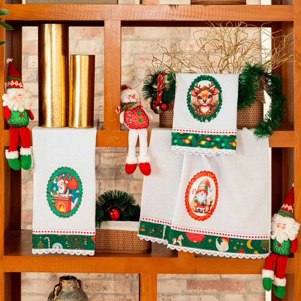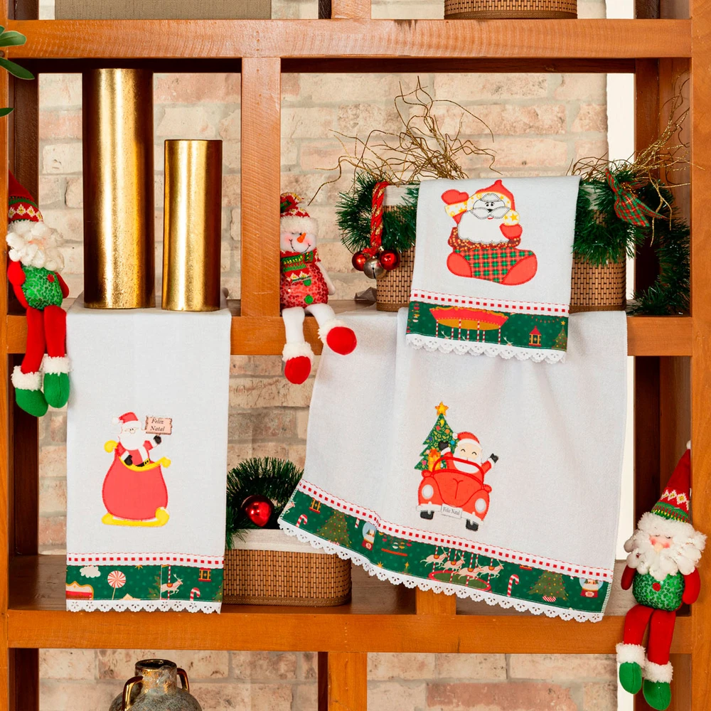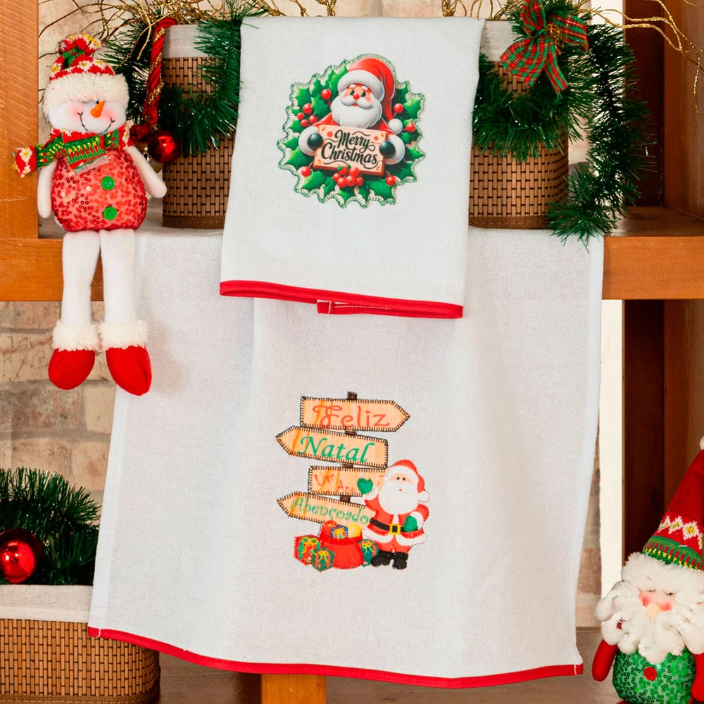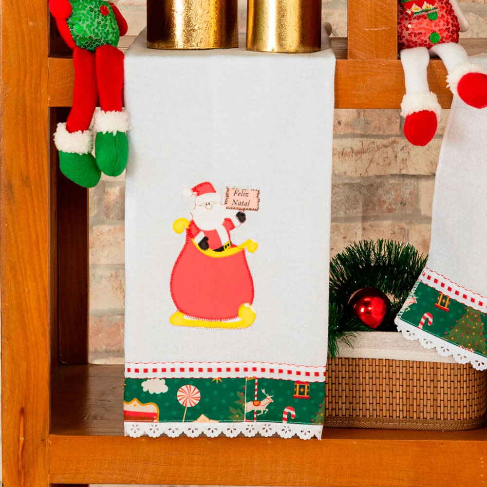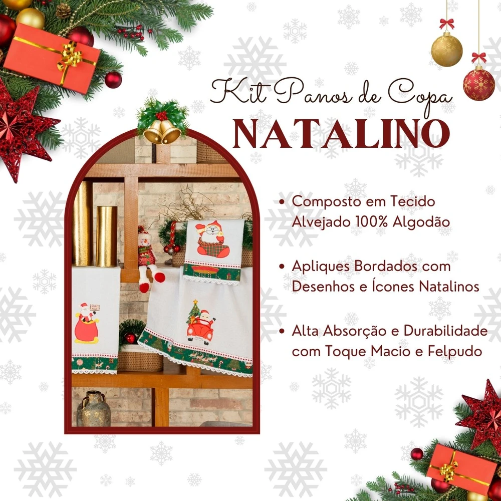Traga a magia e o calor do Natal para a sua cozinha com este encantador Kit de Panos de Copa Natalinos. Este conjunto é a união perfeita entre funcionalidade e decoração, ideal para a época mais festiva do ano. O jogo é composto por 3 peças, todas em um tamanho excelente de 66cm x 45cm, garantindo alta absorção e praticidade no dia a dia. Confeccionados em tecido alvejado 100% algodão, eles possuem um toque macio e são extremamente duráveis. O grande destaque fica por conta dos lindos apliques bordados que apresentam o tema natalino, com desenhos festivos de Papai Noel, Bonecos de Neve, Velas e Árvores de Natal. Além de úteis para as tarefas da cozinha, estes panos servem como uma charmosa peça de decoração, embelezando o seu ambiente e preparando sua casa para as celebrações. Adquira este kit e celebre o Natal com estilo, ou presenteie quem você ama com este item essencial e festivo!