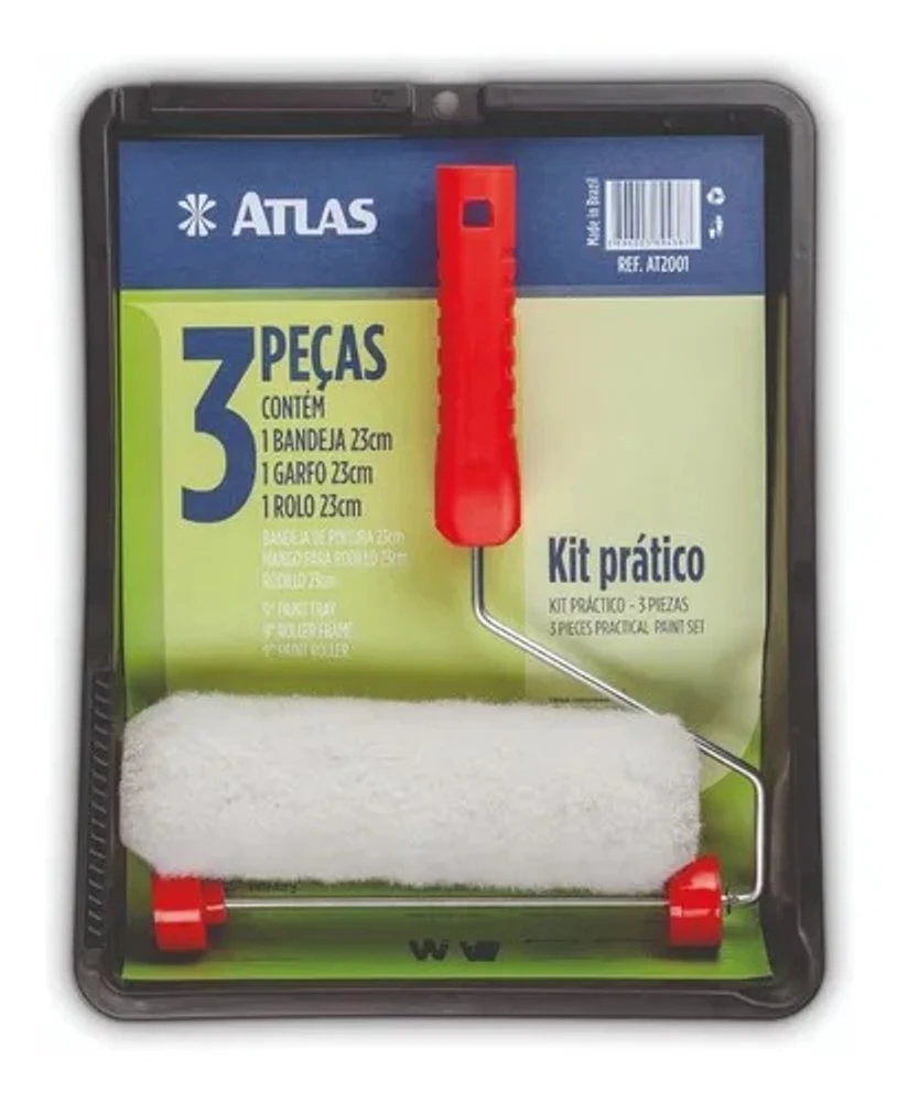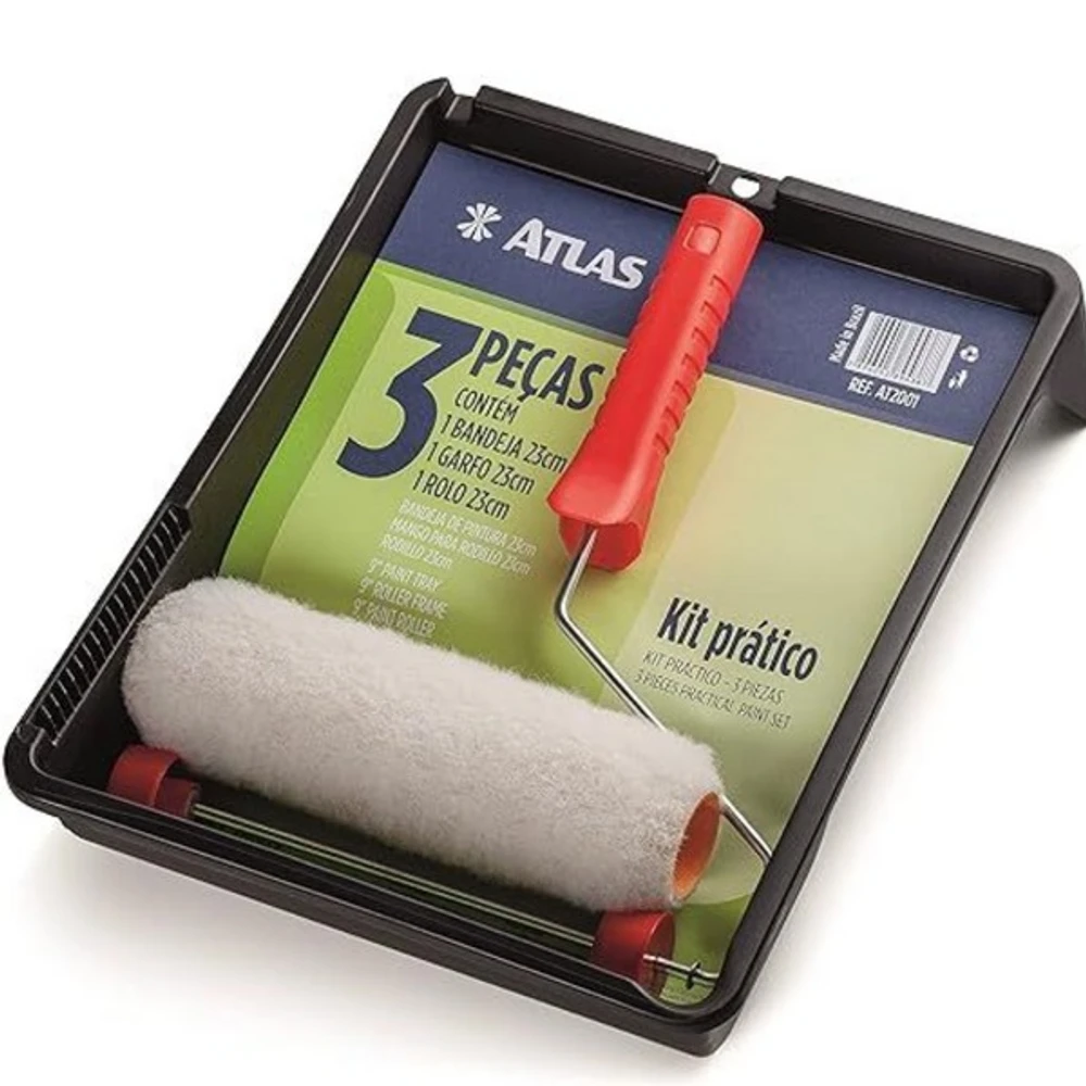 O Kit de Pintura 3 Peças Bandeja Rolo Garfo AT2001 - Atlas é perfeito para quem busca praticidade e qualidade hora de pintar. Compatível com tintas acrílicas, esmaltes e látex, ele atende a diversas necessidades de pintura. Seu rolo de poliéster, com comprimento mínimo de 23 cm, garante uma aplicação uniforme e sem marcas. O punho em plástico proporcio conforto durante o uso. O modelo AT 2001 da marca Atlas é sinônimo de durabilidade e eficiência. Renove seus ambientes com facilidade e precisão utilizando o Kit de Pintura 3 Peças Bandeja Rolo Garfo AT2001 - Atlas.