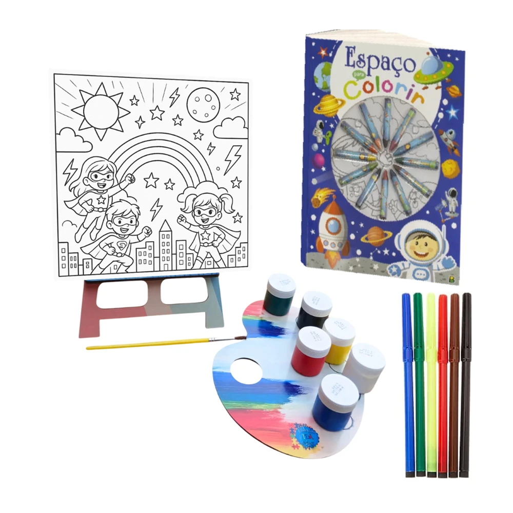 Feito especialmente para os pequenos que adoram desenhar, pintar e explorar cores, este kit traz tudo o que eles precisam para soltar a imaginação e criar verdadeiras obras de arte. É diversão com aprendizado e expressão!
