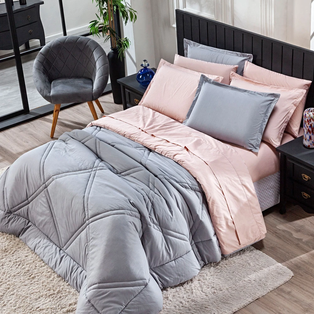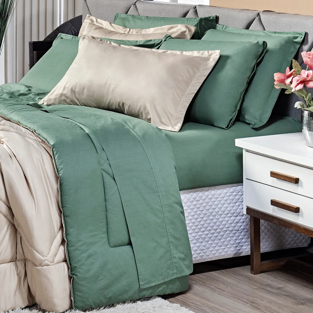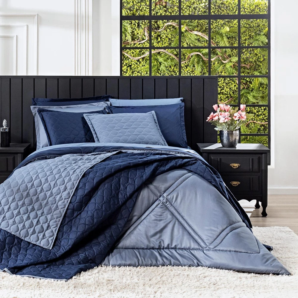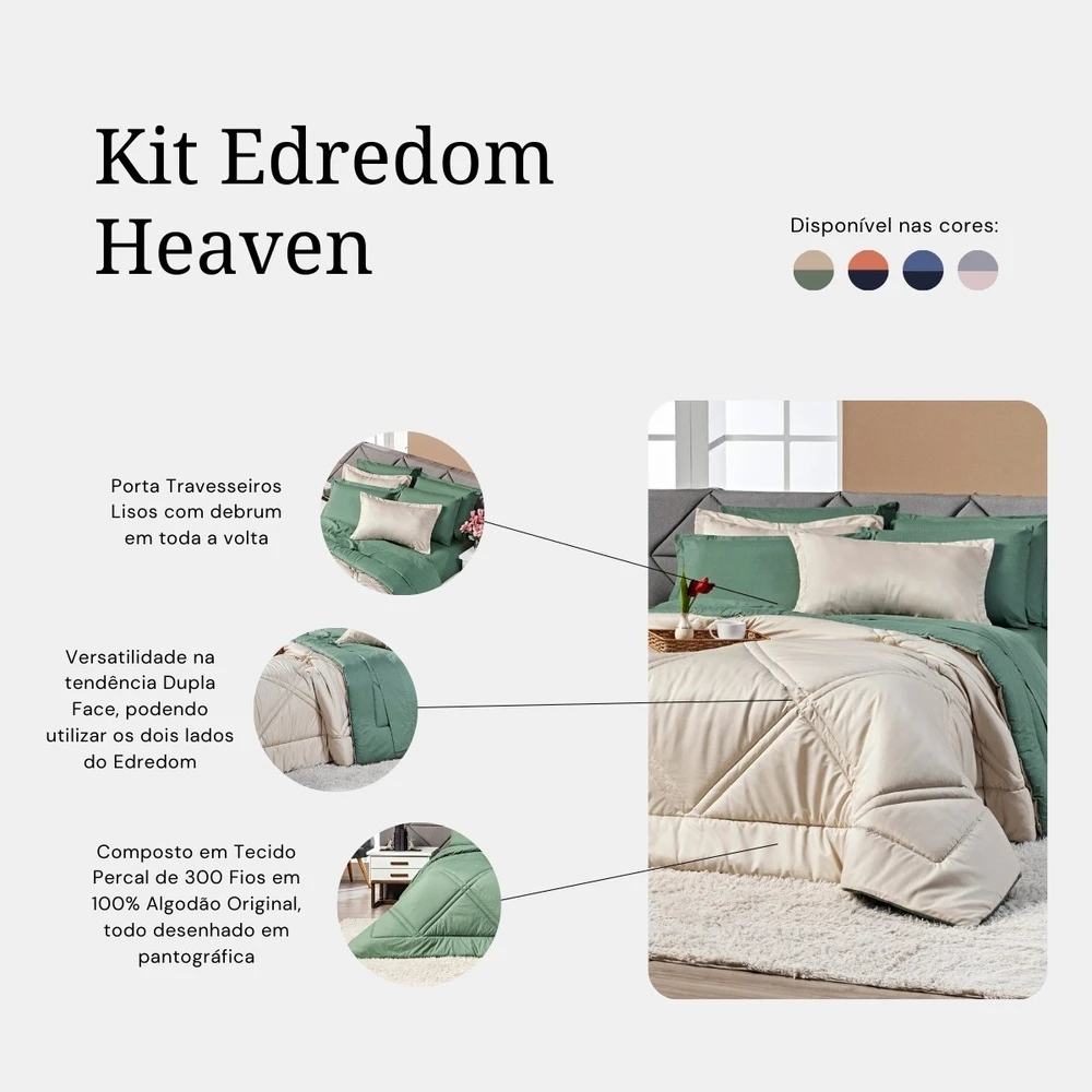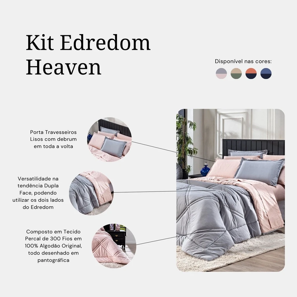 Apresentando o incrível Kit Edredom Heaven! Transforme o seu quarto em um oásis de conforto e estilo com este conjunto luxuoso. Este kit é mais do que simplesmente um conjunto de cama; é uma experiência de conforto e elegância. Feito com tecido liso percal de 300 fios, este conjunto oferece uma sensação suave ao toque, proporcionando uma noite de sono revigorante. O algodão em 100% garante uma qualidade excepcional, sendo suave para a pele e durável ao longo do tempo. O design dupla face adiciona versatilidade à sua decoração, permitindo que você alterne entre duas cores complementares, adicionando um toque de frescor sempre que desejar. Além disso, o conjunto inclui duas fronhas combinando, completando o visual harmonioso da sua cama. Sinta-se envolvido pela maciez, pela qualidade e pelo requinte do Kit Edredom Heaven. Crie um refúgio de relaxamento em seu quarto e mergulhe no conforto absoluto todas as noites. Não apenas um produto, mas um investimento em seu bem-estar e estilo de vida. Adquira agora e descubra o verdadeiro significado de luxo e conforto! Confira!