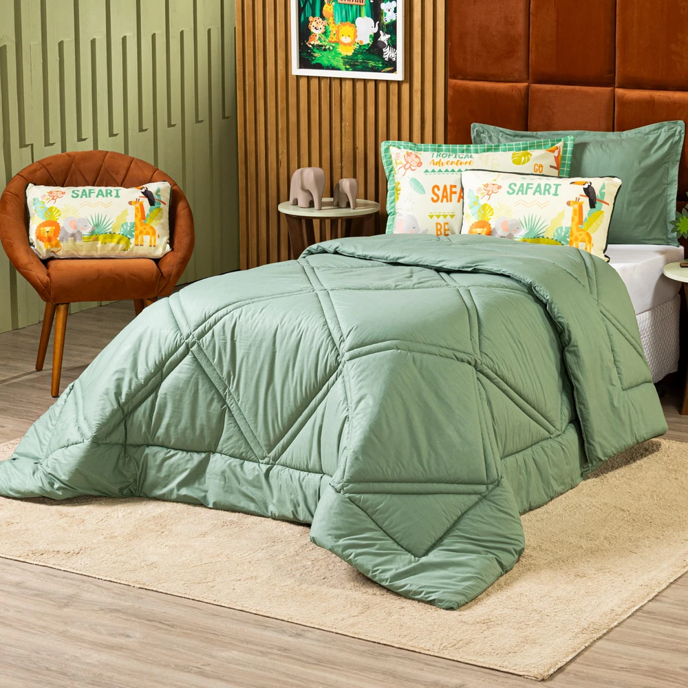 Ideal para quartos infantis, o Kit Edredom Safari não só adiciona um toque de estilo com suas cores e estampas vibrantes, mas também oferece a qualidade e o conforto que seu filho merece. Este conjunto é perfeito para criar um ambiente acolhedor, divertido e moderno, onde as crianças podem descansar e se divertir. Confira!
