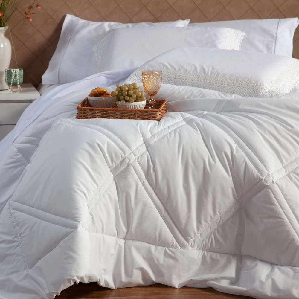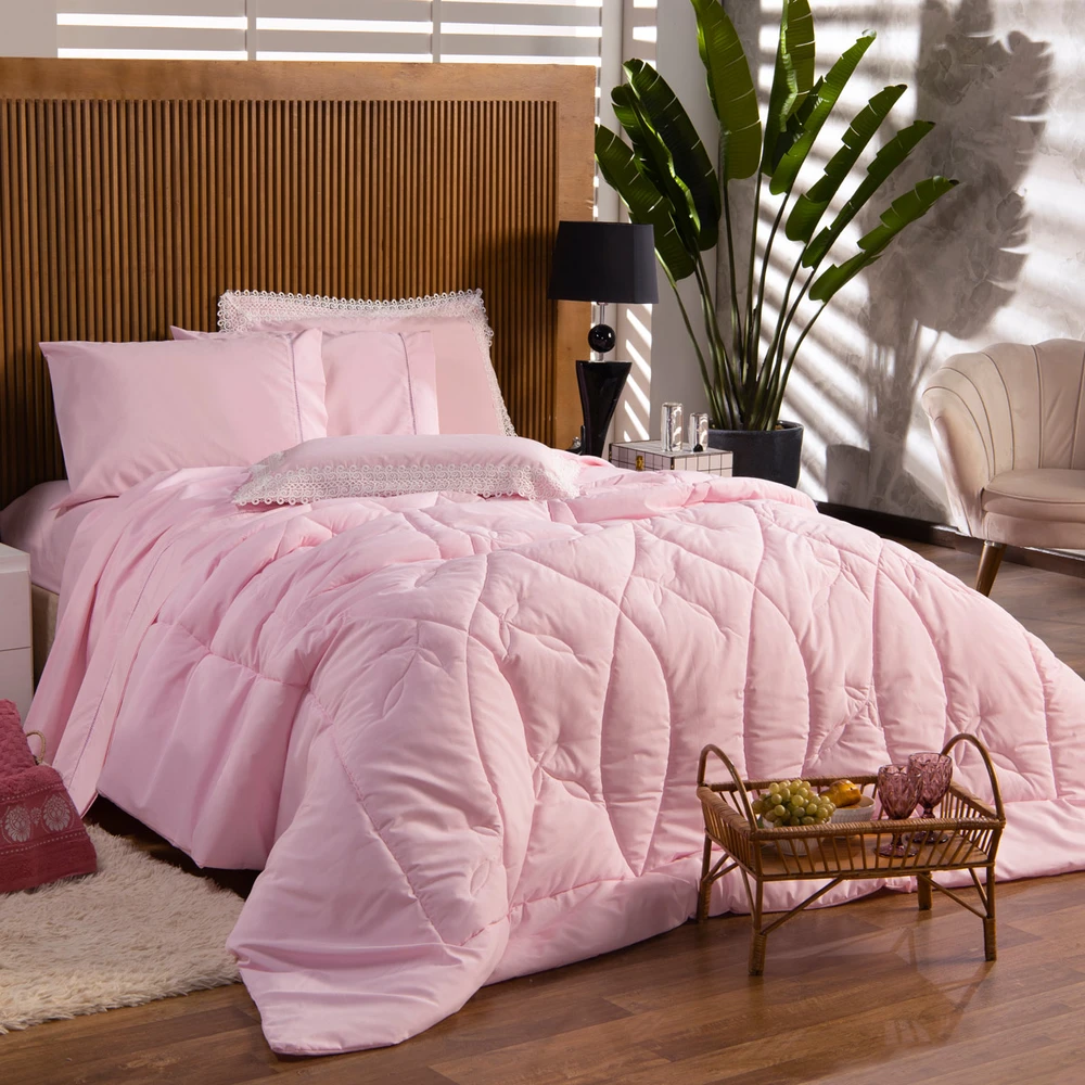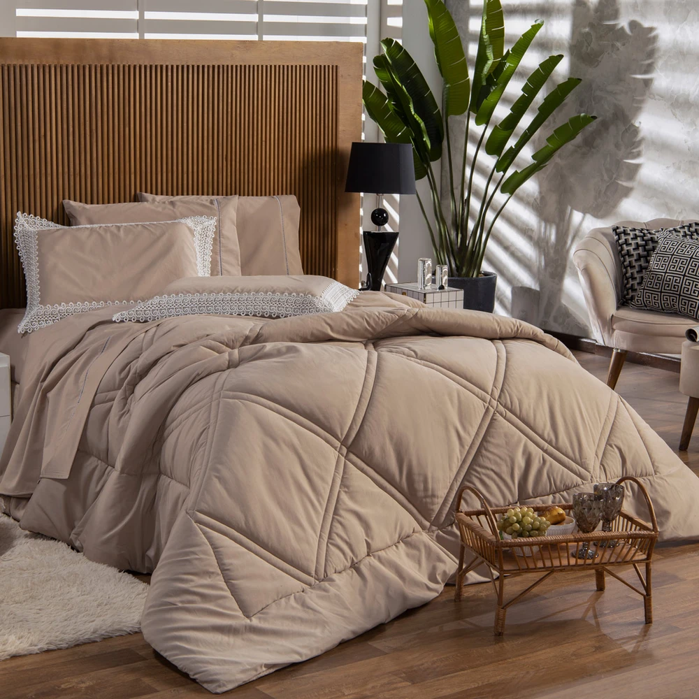 A nova coleção Florença traz toda a sofisticação e aconchego. Por possuírem dupla face, apresentam superfície que valoriza ainda mais as cores, confeccionado em pantográfica computadorizada com lindos desenhos geométricos no edredom! Composto em tecido Percal 200 Fios 80% algodão super macio com 200g de enchimento, agregando ainda mais para seu conforto! Acompanhando também dois porta-travesseiros com detalhes no acabamento em Guipir super moderno! Com a aplicação da renda Guipir se tem mais sofisticação e elegância, bonito e delicado para investir em uma decoração, totalmente em alta e é uma peça presente nas roupas e objetos decorativos por sua fácil composição e delicadeza, podendo facilmente ser utilizada em diversos ambientes para a decoração da casa, deixando tudo muito mais bonito e com um toque romântico. Ideal para decorar, trazer conforto e tornar o quarto ainda mais convidativo e elegante! Confira!