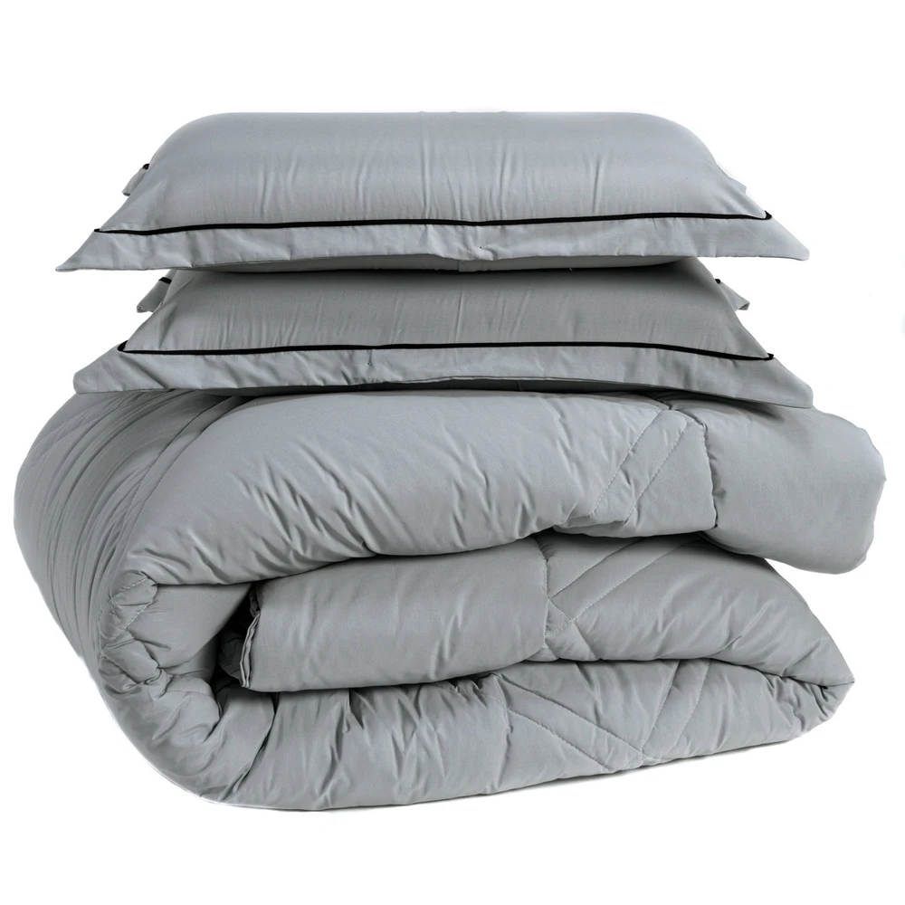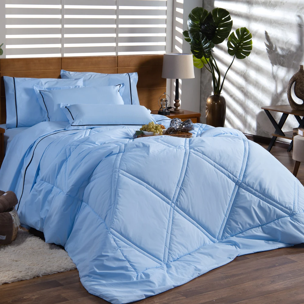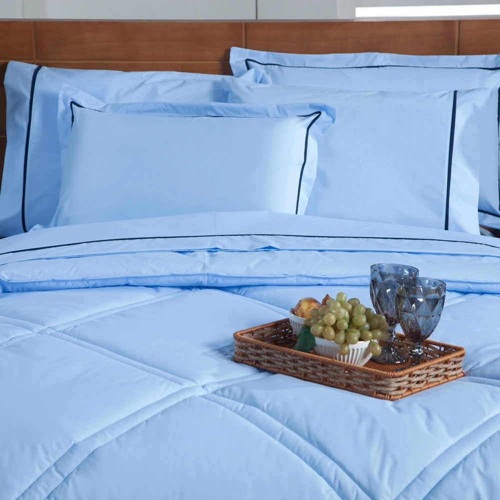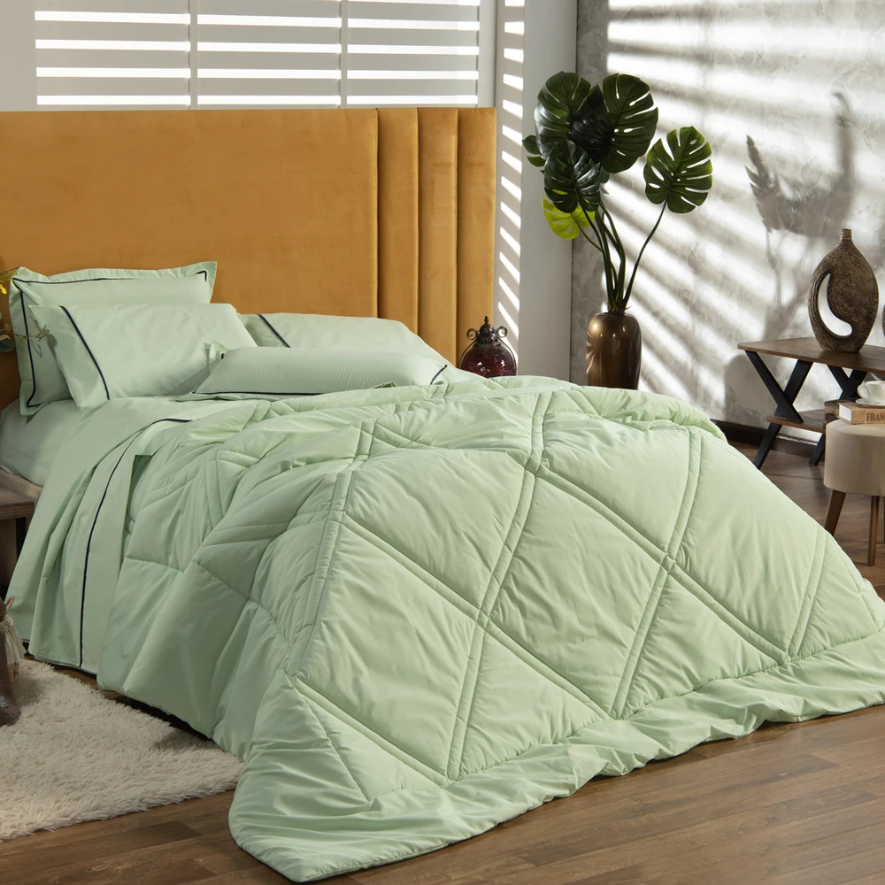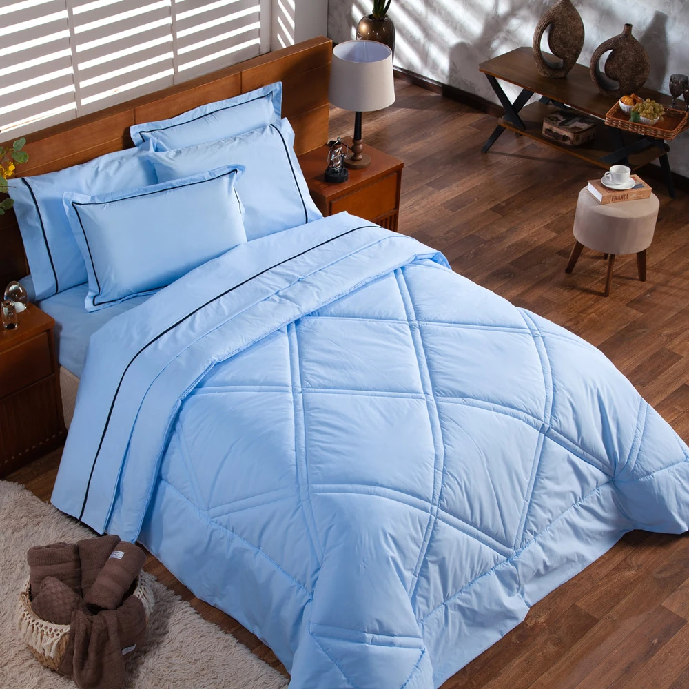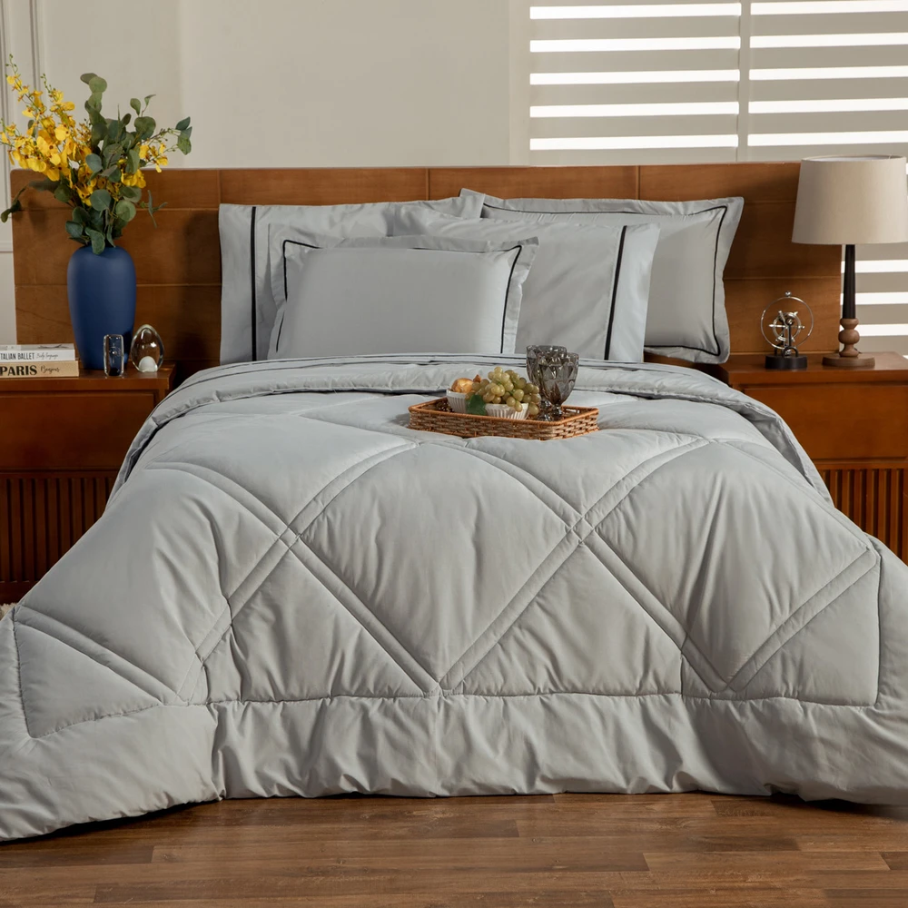 A nova coleção Milano traz toda a sofisticação e aconchego. Por possuírem dupla face, apresentam superfície que valoriza ainda mais as cores, confeccionado em pantográfica computadorizada com lindos desenhos geométricos no edredom! Composto em tecido Percal 200 Fios 80% algodão super macio com 200g de enchimento, agregando ainda mais para seu conforto! Acompanhando também dois porta-travesseiros com detalhes no acabamento em Viés super moderno! Ideal para decorar, trazer conforto e tornar o quarto ainda mais convidativo e elegante! Confira!