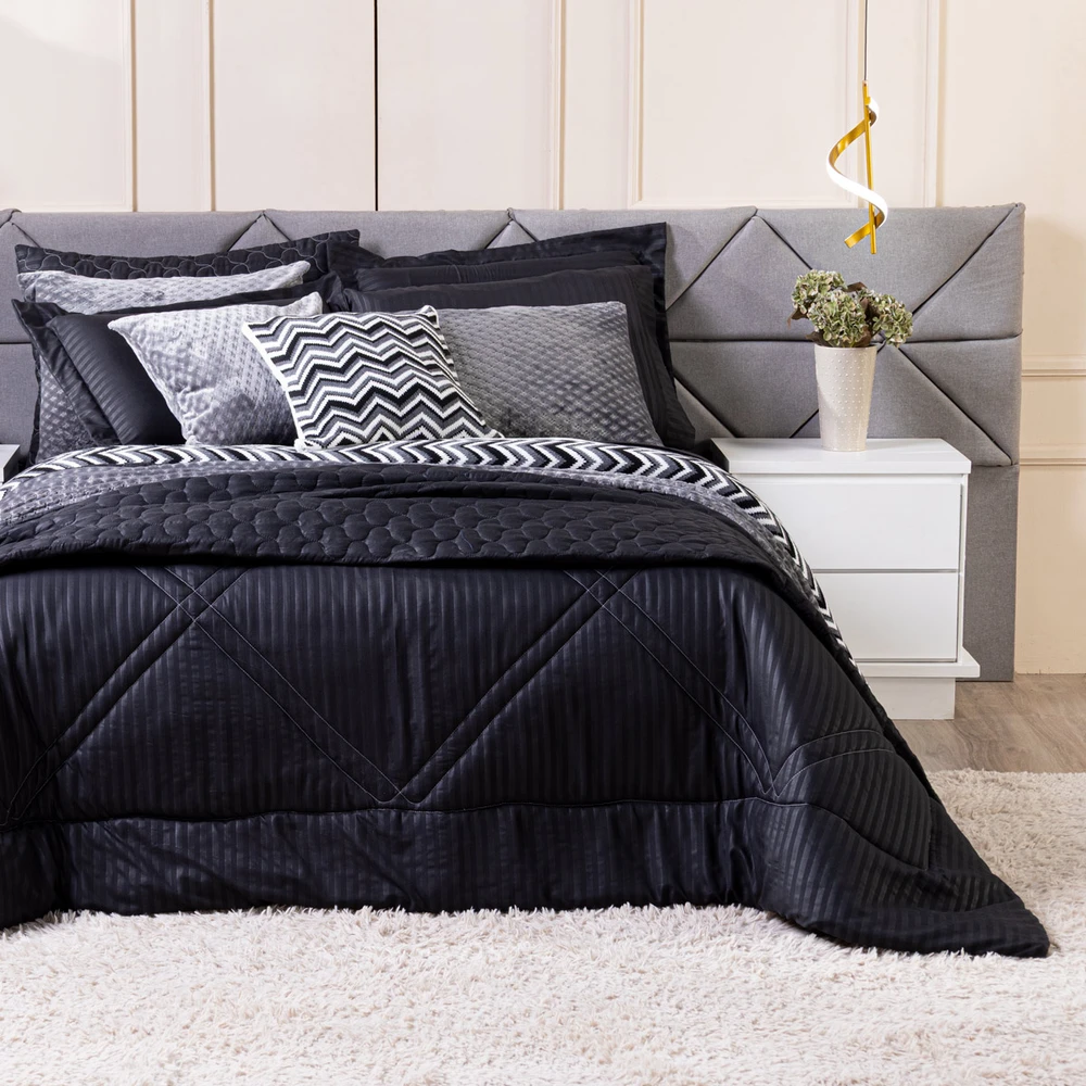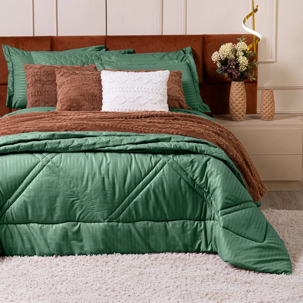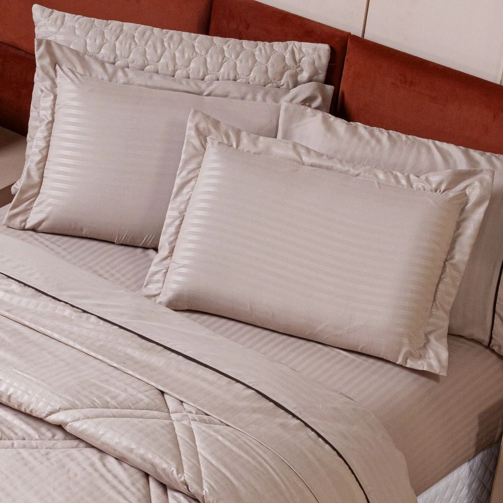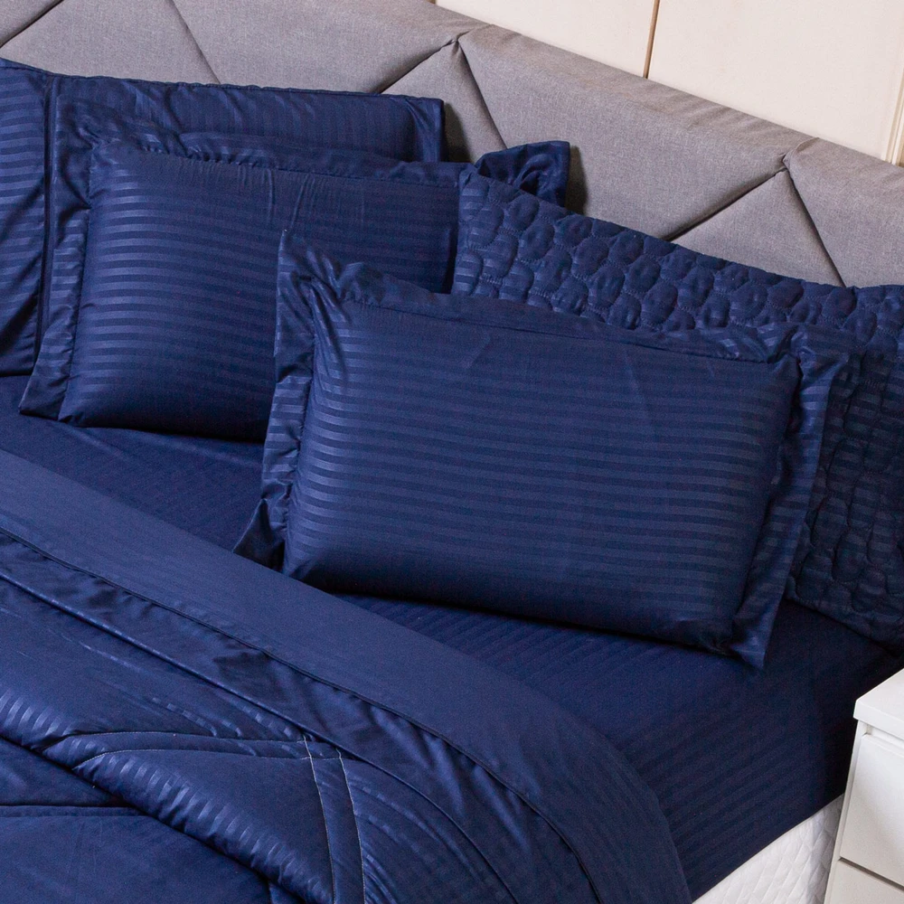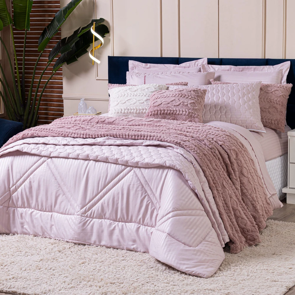 O Kit Edredom Mônaco em Tecido Fitado Percal 300 Fios é a escolha perfeita para quem busca conforto, sofisticação e praticidade. Composto por três peças, sendo um edredom e duas fronhas, este kit proporciona um toque acetinado, garantindo uma sensação suave e agradável. A textura do percal soft em 300 fios combina resistência e maciez, proporcionando noites de sono de qualidade. O design dupla face em desenho listrado oferece versatilidade para compor diferentes estilos de decoração, com linhas em alto relevo brilhante, adaptando-se facilmente aos diversos ambientes. A escolha do tecido fitado confere um acabamento impecável, enquanto as listras discretas no tecido dão um toque de elegância e modernidade. Perfeito para transformar o visual do seu quarto, o Kit Edredom Mônaco oferece não apenas beleza, mas também funcionalidade e durabilidade, sendo ideal para quem aprecia o conforto de um bom descanso. Confira!