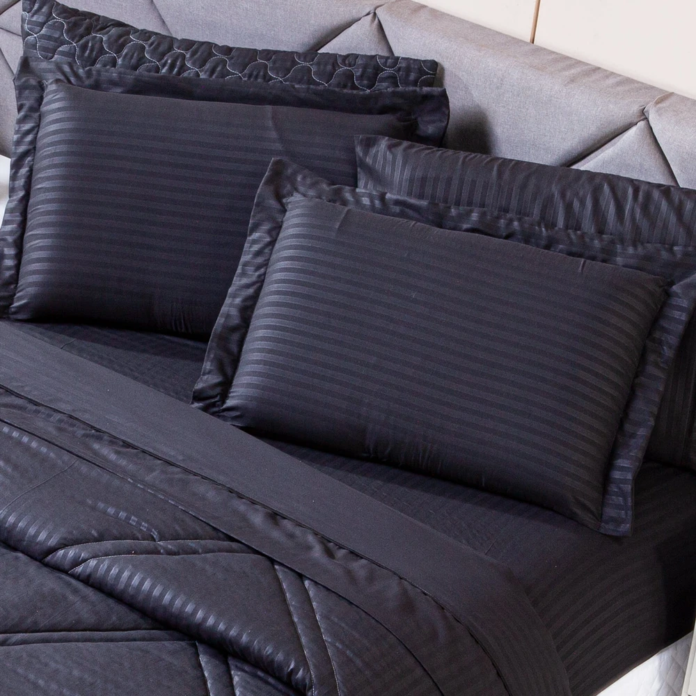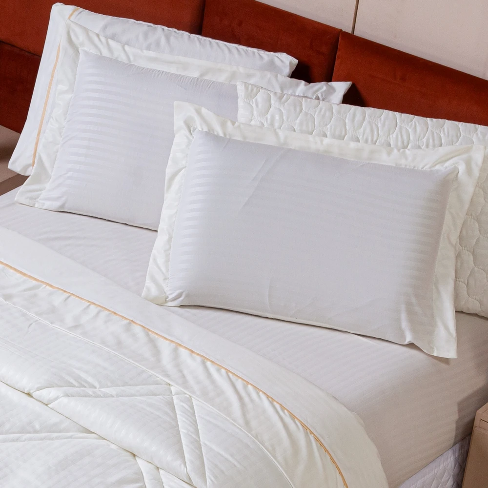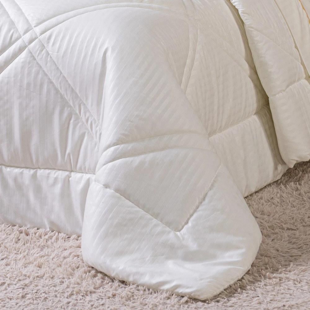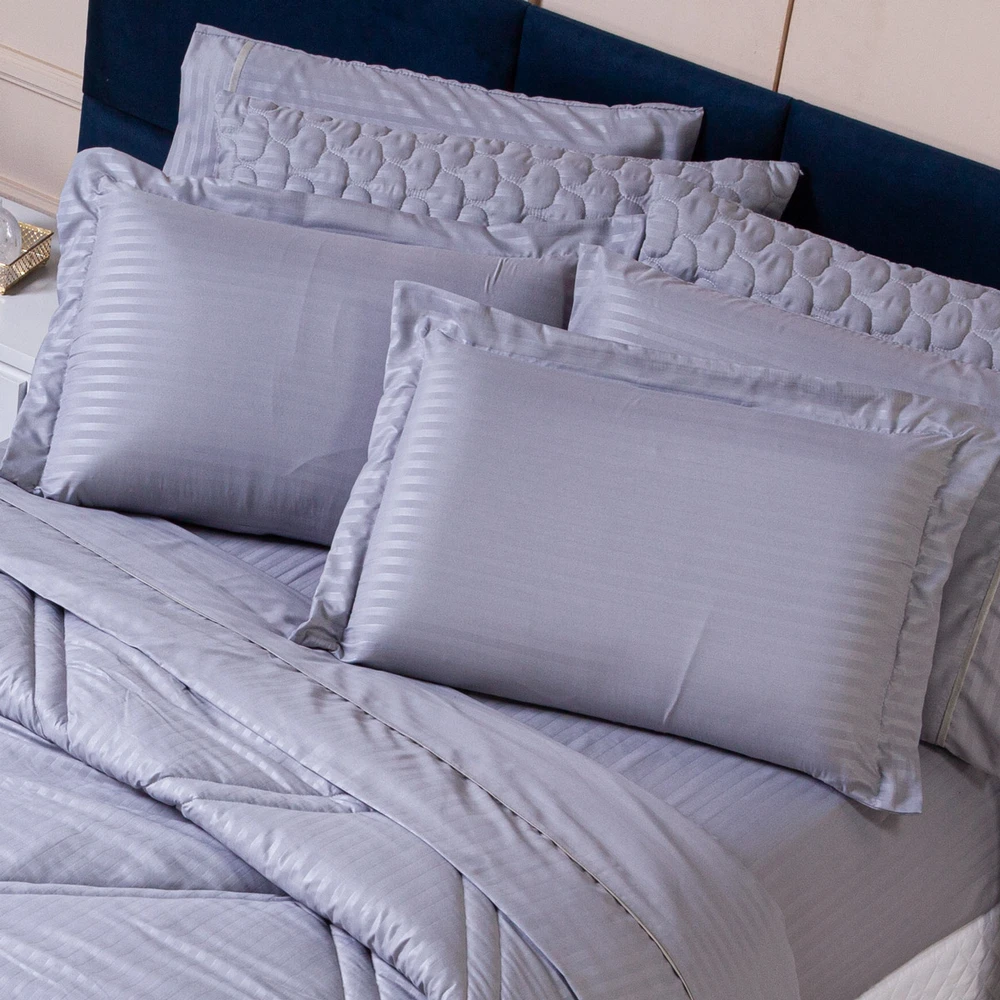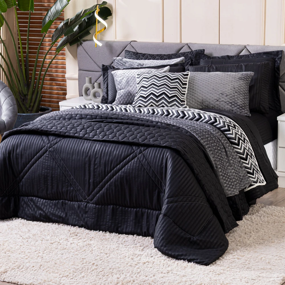 O Kit Edredom Mônaco em Tecido Fitado Percal 300 Fios é a escolha perfeita para quem busca conforto, sofisticação e praticidade. Composto por três peças, sendo um edredom e duas fronhas, este kit proporciona um toque acetinado, garantindo uma sensação suave e agradável. A textura do percal soft em 300 fios combina resistência e maciez, proporcionando noites de sono de qualidade. O design dupla face em desenho listrado oferece versatilidade para compor diferentes estilos de decoração, com linhas em alto relevo brilhante, adaptando-se facilmente aos diversos ambientes. A escolha do tecido fitado confere um acabamento impecável, enquanto as listras discretas no tecido dão um toque de elegância e modernidade. Perfeito para transformar o visual do seu quarto, o Kit Edredom Mônaco oferece não apenas beleza, mas também funcionalidade e durabilidade, sendo ideal para quem aprecia o conforto de um bom descanso. Confira!