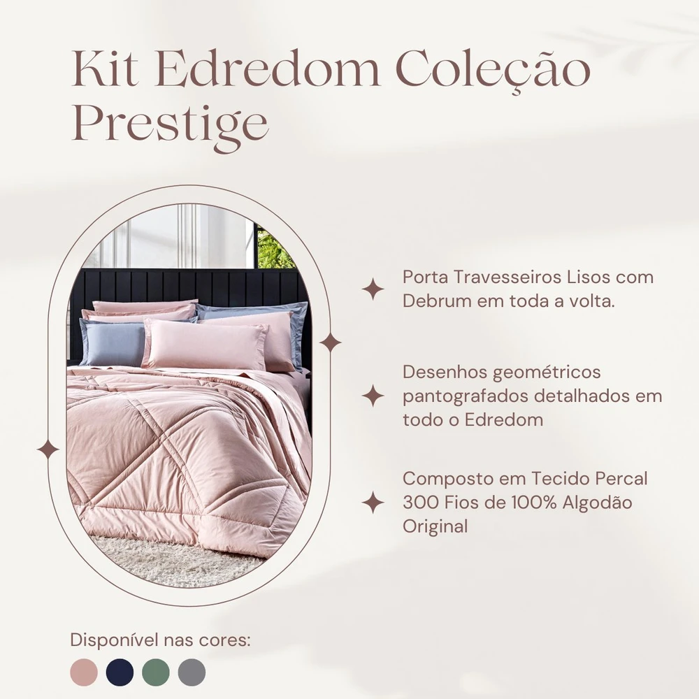 Apresentamos o espetacular Kit Edredom Prestige, a essência do luxo e do conforto para o seu refúgio pessoal! Este kit não é apenas uma adição à sua cama; é uma declaração de estilo e qualidade incomparável. Confeccionado com tecido liso percal de 300 fios, cada toque é uma experiência de suavidade e requinte, proporcionando noites de sono verdadeiramente revigorantes. Fabricado com 100% algodão, este conjunto garante não apenas conforto supremo, mas também durabilidade excepcional. A praticidade do design dupla face permite que você utilize qualquer um dos dois lados do edredom, adaptando-se perfeitamente ao seu dia-a-dia. Com duas fronhas coordenadas, o conjunto cria uma estética coesa e elegante, elevando instantaneamente o visual do seu espaço. Mime-se com o conforto indulgente e a qualidade inigualável do Kit Edredom Prestige. Criado para aqueles que valorizam não apenas o sono reparador, mas também o estilo e o requinte em cada detalhe. Não apenas um produto, mas um investimento em seu bem-estar e na estética do seu lar. Experimente o luxo definitivo e transforme suas noites em uma experiência de puro deleite. Adquira agora e mergulhe na indulgência de um sono verdadeiramente celestial! Confira!
