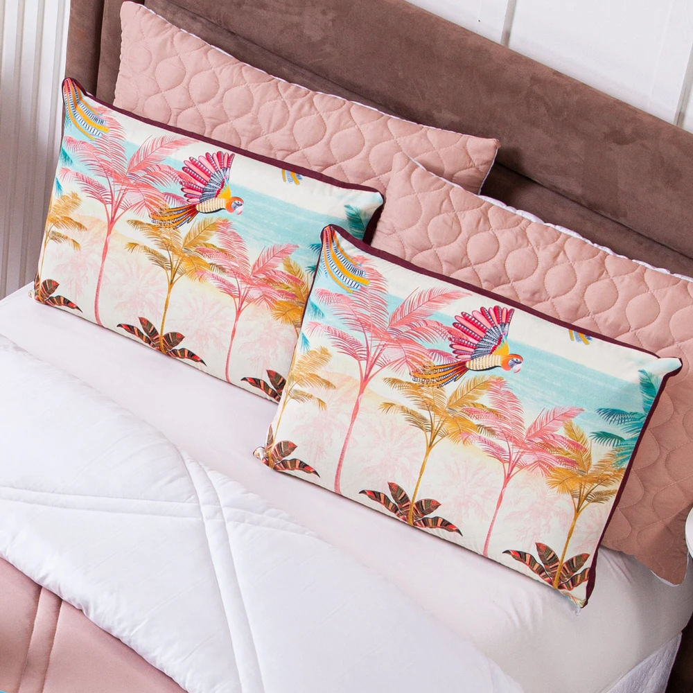 02 Porta Travesseiros Estampados em Veludo 70cm x 50cm com Viés