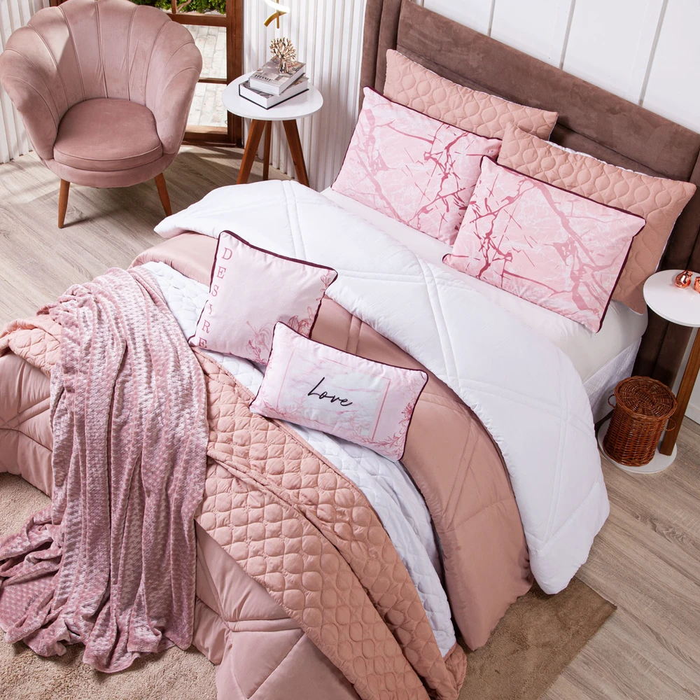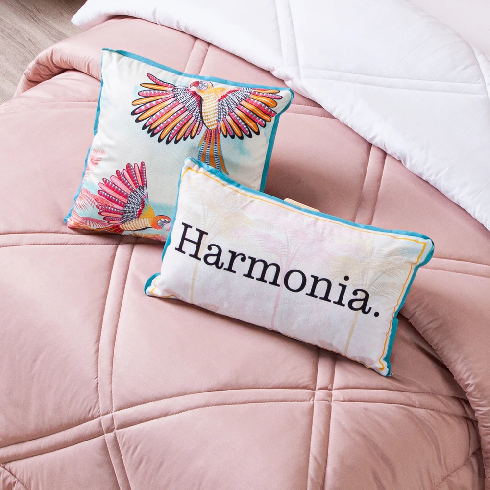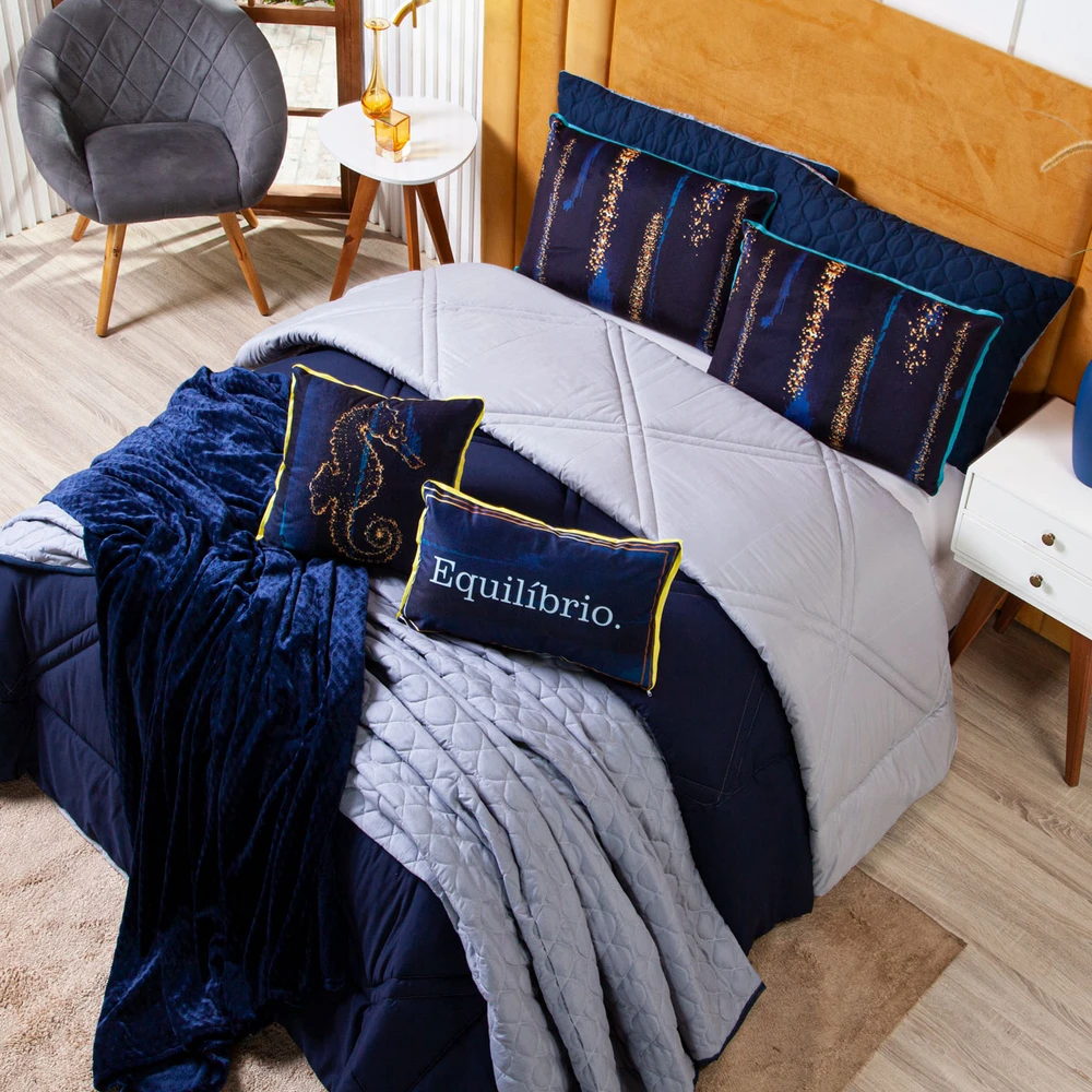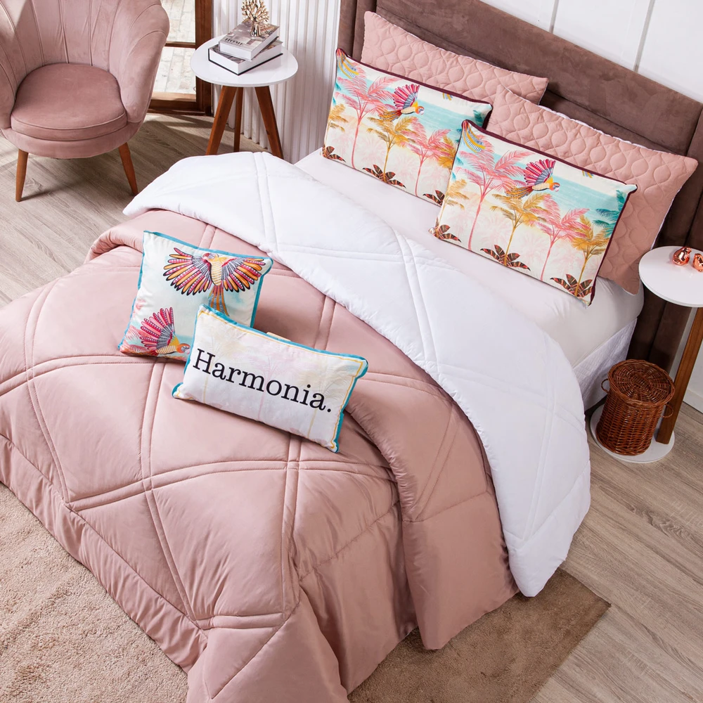 O Kit Verano é a escolha ideal para quem deseja transformar o quarto em um espaço cheio de vida e aconchego. Inspirado na beleza da natureza, ele traz estampas vibrantes que remetem à floresta, com animais, flores e plantas em cores intensas que deixam o ambiente mais alegre e acolhedor. Produzido em percal poliéster de 300 fios, o tecido oferece um toque super macio e agradável, enquanto o enchimento alto e volumoso garante noites de sono mais confortáveis. O edredom é dupla face e conta com acabamento pantográfico computadorizado, que valoriza ainda mais o design e confere um detalhe sofisticado à peça. Para completar, o kit acompanha fronhas lisas e estampadas, além de almofadas temáticas que dão um charme e trazem uma mensagem especial à decoração, criando um conjunto prático, elegante e cheio de estilo para o dia a dia.