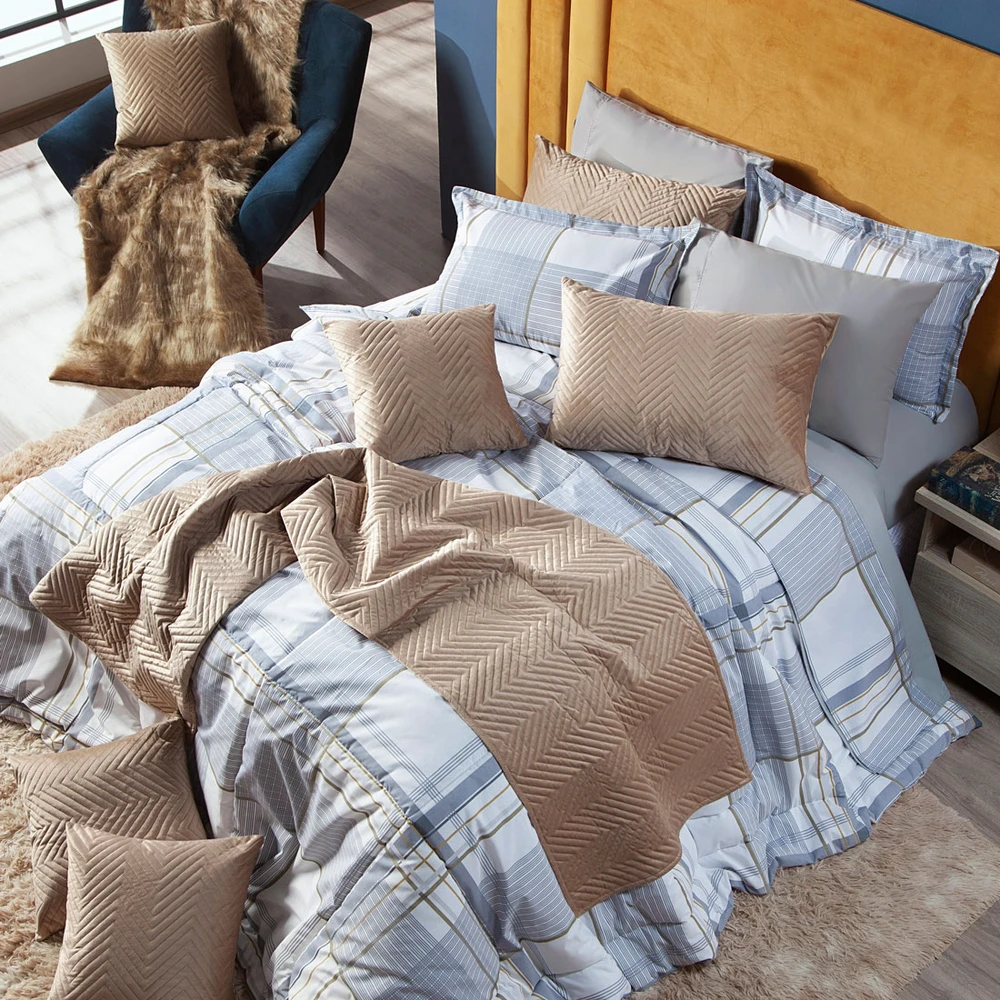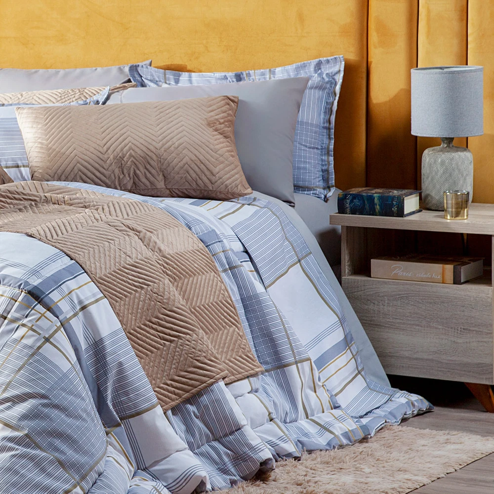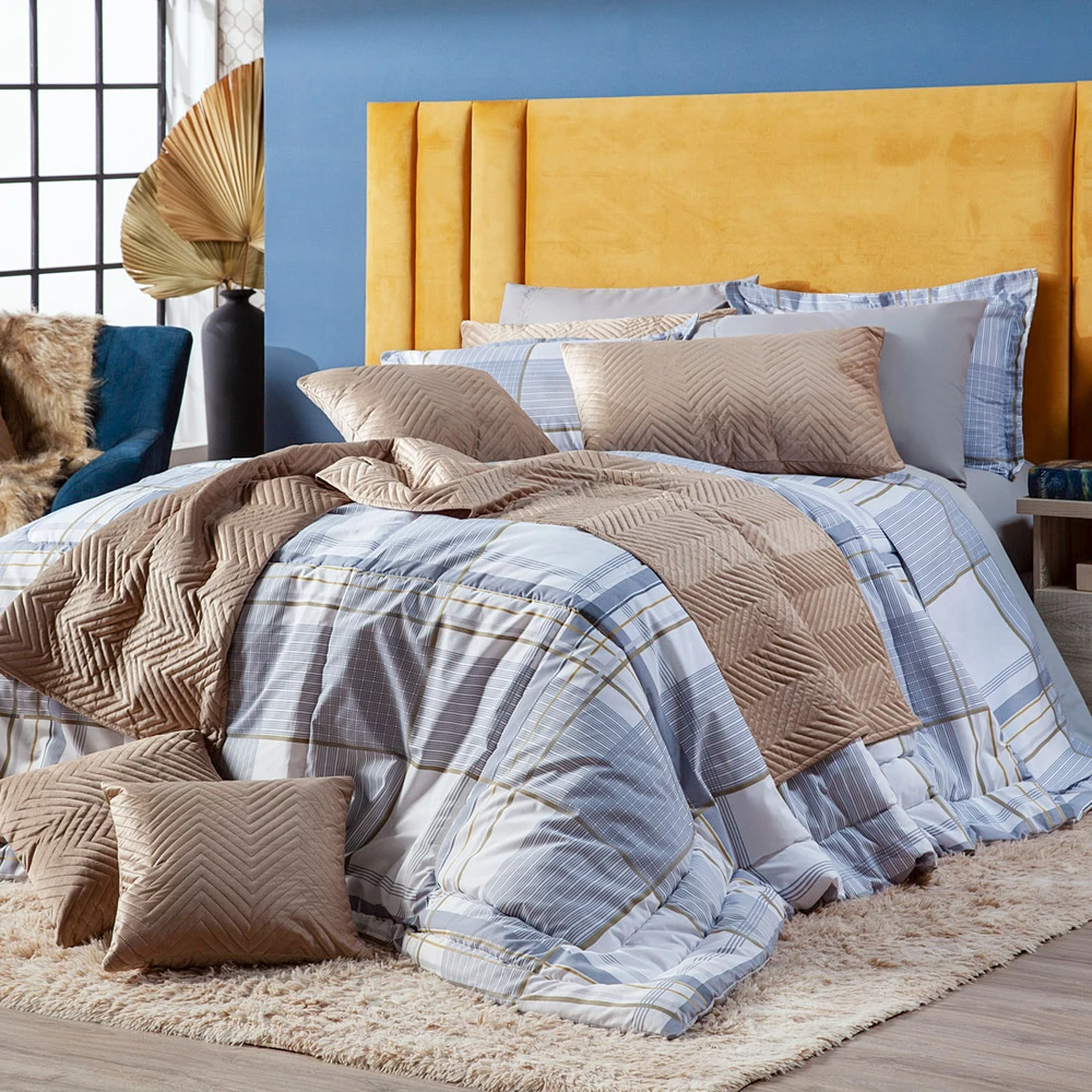 Nova Coleção Ravena, o Kit perfeito, coordenando cores e estampas que foram desenvolvidas especialmente para deixar o quarto ainda mais elegante. Dupla face você terá dois edredons em um só, podendo utilizar os dois lados! Esses edredons são fabricados em tecido Percal 200 fios de altíssima qualidade, perfeito para uma boa noite de sono, trazendo mais resistência, conforto e praticidade na hora de lavar. Além do belíssimo Edredom, o Kit acompanha um par de porta-travesseiros da mesma estampa, combinando tudo para sua decoração e também para presentear quem você ama! Confira!