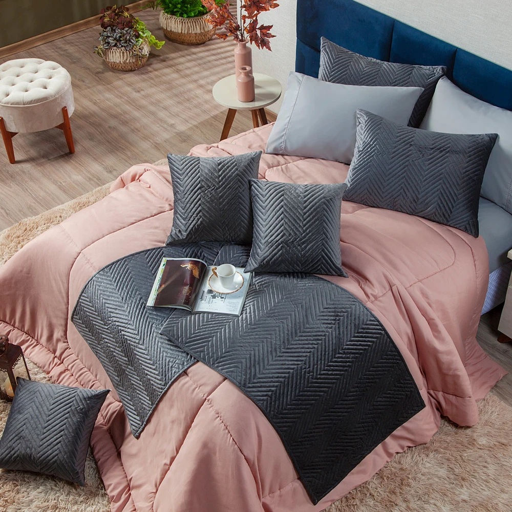 Nova Coleção Tóquio, o Kit perfeito, coordenando cores e estampas que foram desenvolvidas especialmente para deixar o quarto ainda mais elegante. Dupla face você terá dois edredons em um só, podendo utilizar os dois lados! Esses edredons são fabricados em tecido Percal 200 Fios de altíssima qualidade, perfeito para uma boa noite de sono, trazendo mais resistência, conforto e praticidade na hora de lavar. Além do belíssimo Edredom, o Kit acompanha um par de porta-travesseiros em veludo estampado com um toque maravilhoso, combinando tudo para sua decoração e também para presentear quem você ama! Confira!