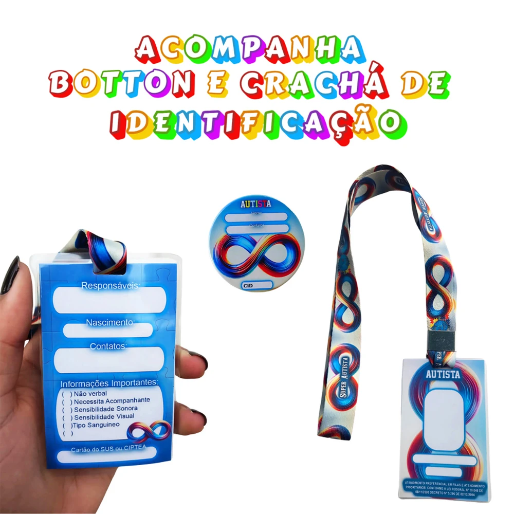 – Inclui crachá de identificação e botton autista, promovendo visibilidade e respeito à neurodiversidade;