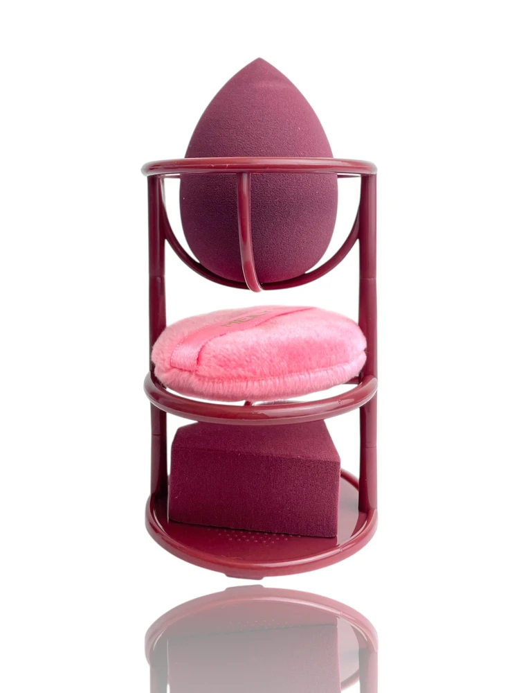 O suporte mantém as esponjas sempre limpas, secando corretamente e deixando seu cantinho de maquiagem ainda mais organizado.
