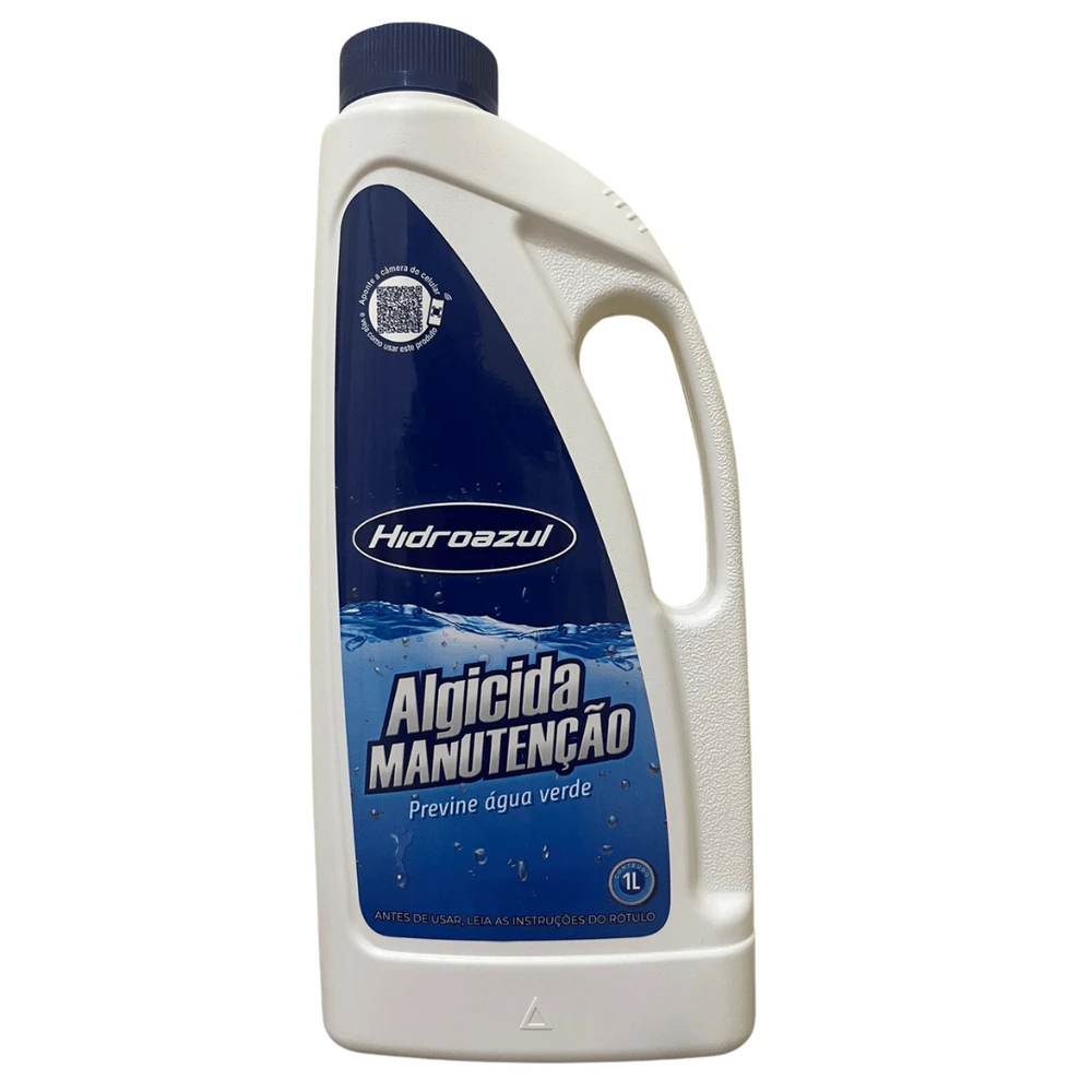 O Algicida Manutenção Hidroazul é um produto desenvolvido para prevenir a formação e a proliferação de algas, microrganismos que tornam a água da piscina verde e turva, com pisos e paredes escorregadias. Pode ser utilizado em todos os tipos de piscinas. Este produto não deve ser aplicado em conjunto com o cloro. Dê um intervalo de aproximadamente 8 horas entre a aplicação do Algicida Manutenção e o cloro.