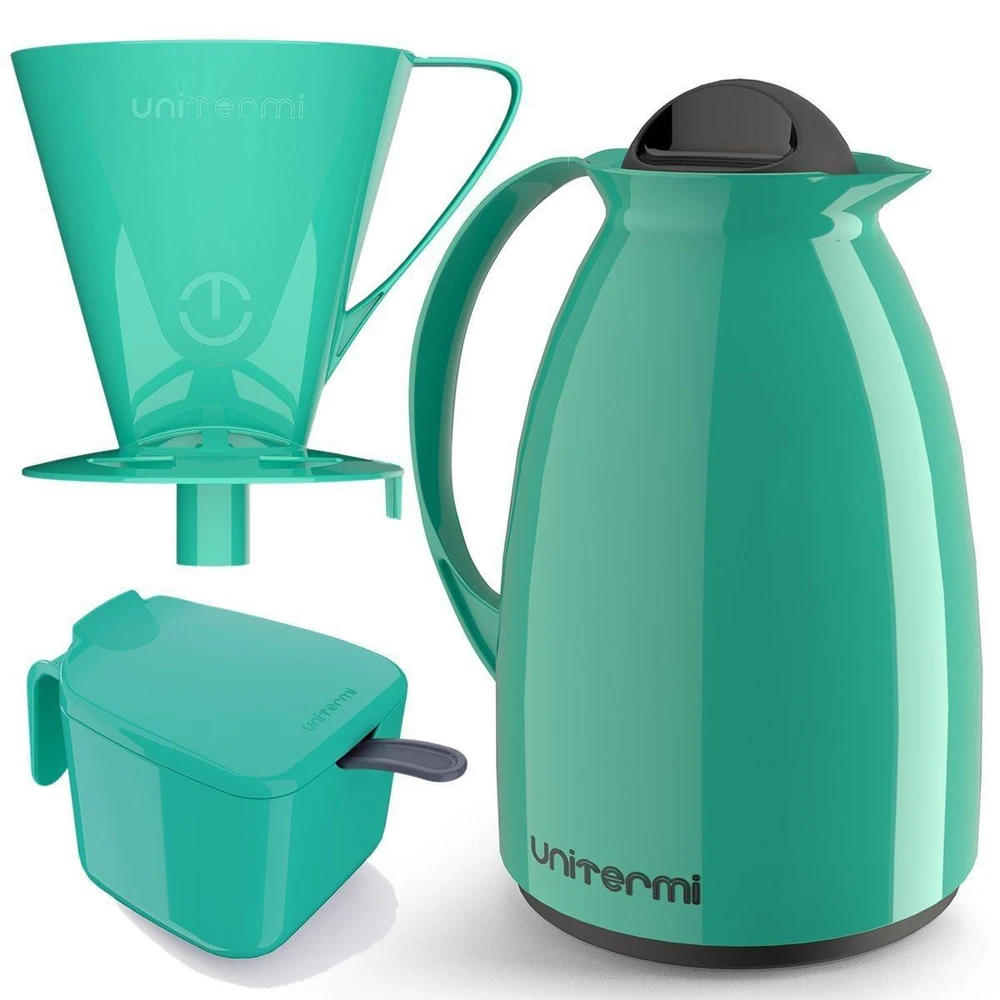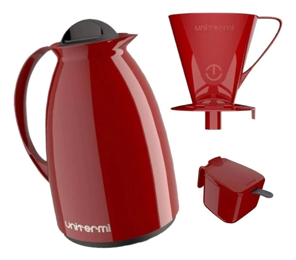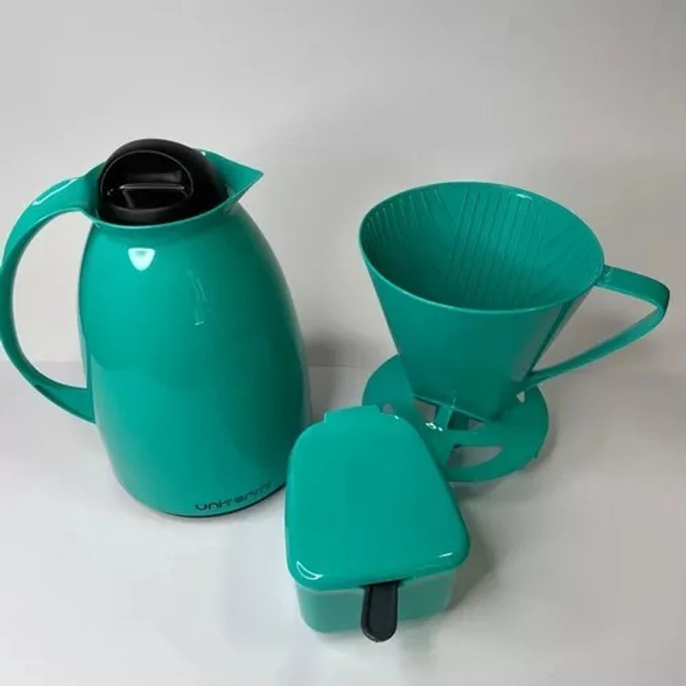 Um kit super prtico facilitando sua vida na cozinha, com os itens mo! O suporte para o filtro de caf tem o encaixe perfeito na garrafa. Tudo na mesma cor, deixando o cantinho do café mais charmoso e elegante.