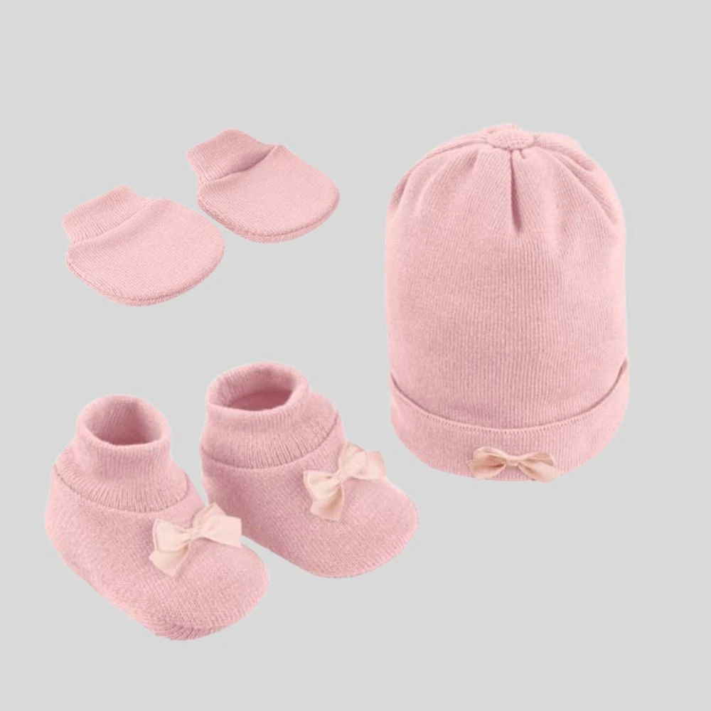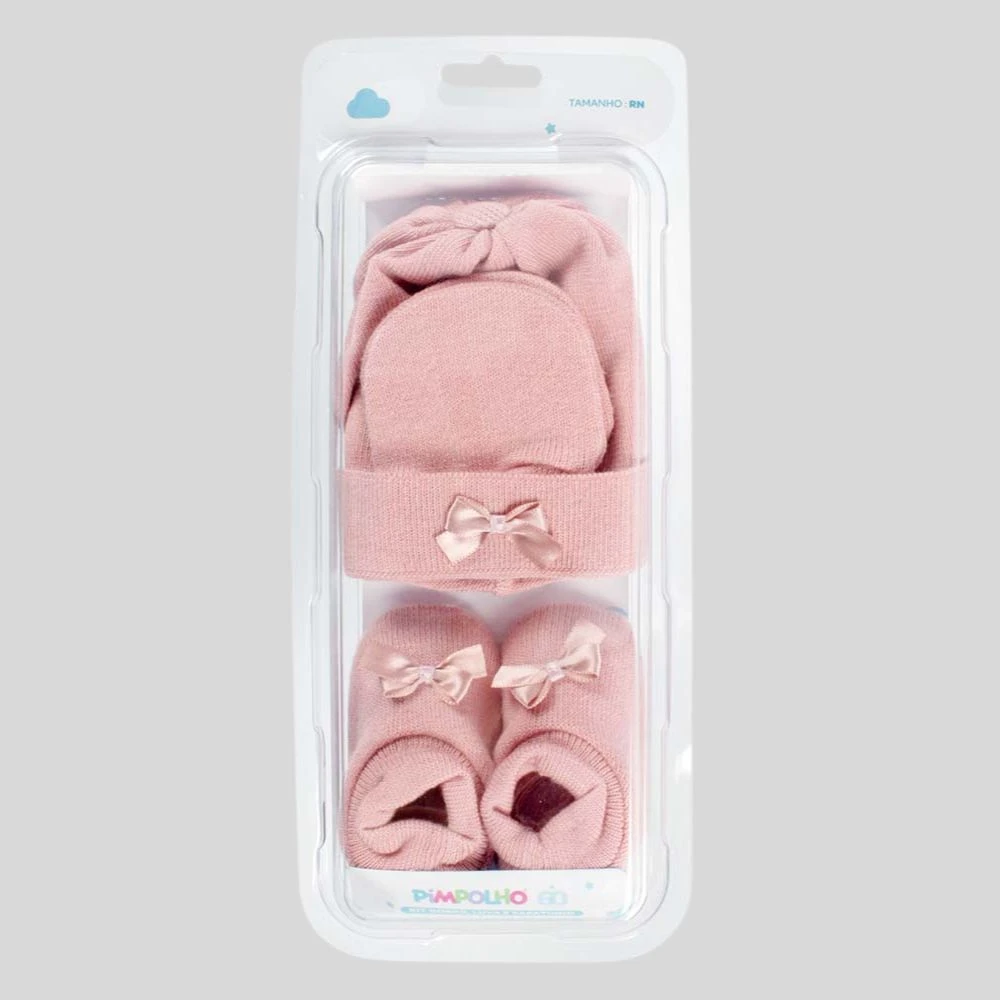 Kit Gorro, Luva e Sapatinho Pimpolho RN em Estojo Presente Rosa: o conforto essencial para recém-nascidos. Desenvolvido especialmente para proteger e aquecer os primeiros dias do bebê, esse kit combina maciez e delicadeza em peças confeccionadas com tecido suave e antialérgico, garantindo cuidado e segurança à pele sensível dos pequenos.