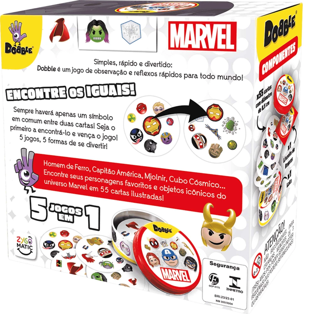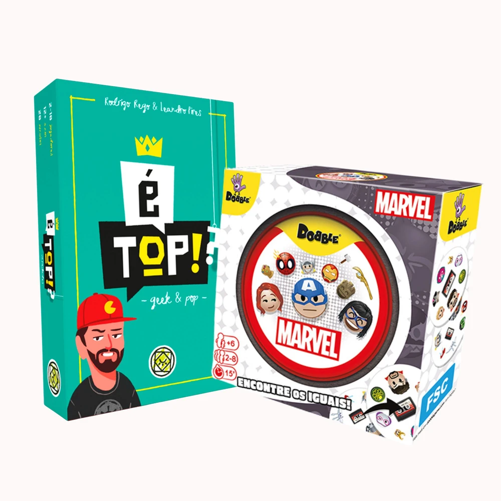 Dois jogos de cartas perfeitos para quem gosta de partidas rápidas, regras simples e muita interação. Este combo reúne Dobble Marvel e É Top!? em um único pedido, ideal para quem quer diversão imediata ou um presente fácil de acertar. O que vem no combo: Dobble Marvel: