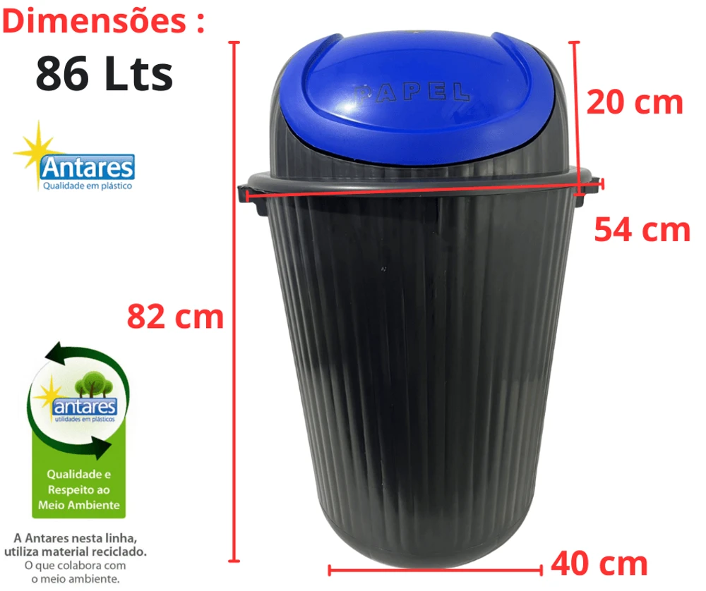 Sua tampa basculante em diferentes cores facilita contribui para que o lixo não fique exposto e facilita o manuseio e  o descarte correto de resíduos, contribuindo para a preservação do meio ambiente e a sustentabilidade.