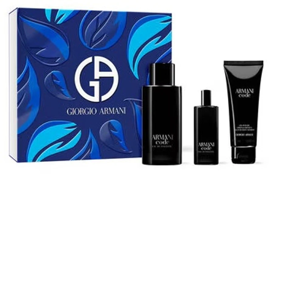 Descubra o coffret exclusivo Armani Code Eau de Toilette, em uma linda caixa estampada, que combina a fragrância Armani Code EDT 125ml + a fragrância Armani Code EDT 15ml + shower gel Armani Code 75ml.