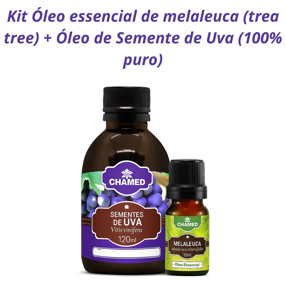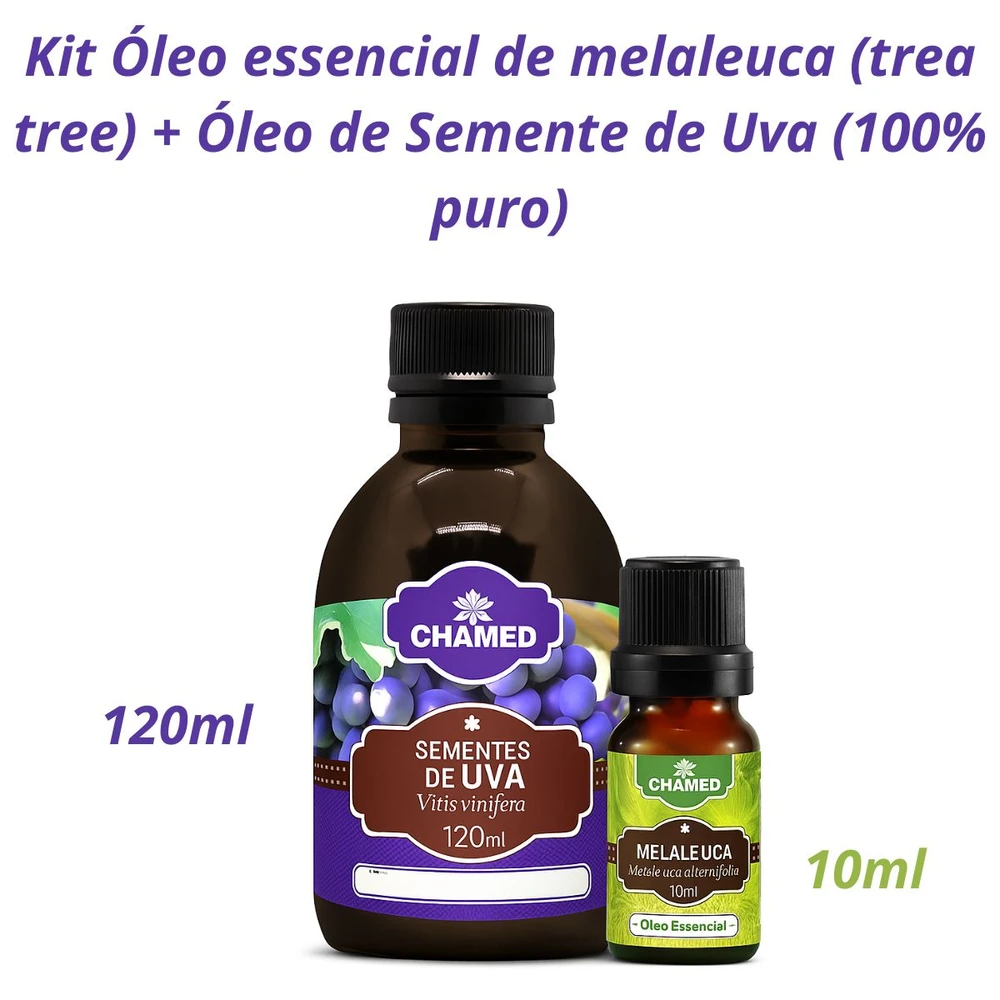 Kit Óleo Essencial de Melaleuca (Trea-Tree) + Óleo Semente de Uva (100% Puro)