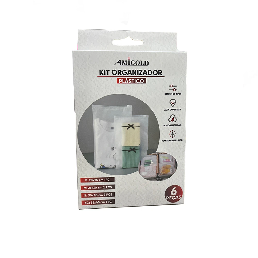 Kit Organizador Zip Lock da Amigold vem com 6 peças