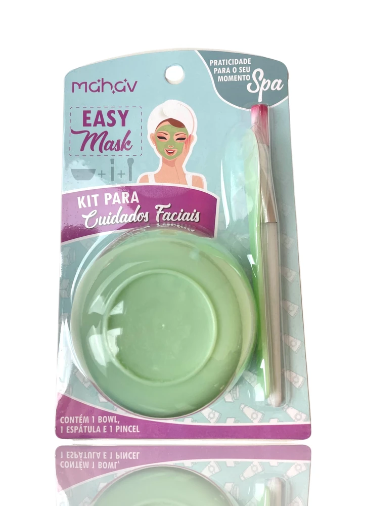 O Kit para Cuidados Faciais Mahav – Easy Mask é perfeito para quem ama transformar o skincare em um momento de autocuidado completo. Prático, leve e super funcional, ele acompanha 1 bowl, 1 espátula e 1 pincel, ideais para aplicar máscaras faciais, argilas, hidratantes, esfoliantes e misturinhas caseiras.