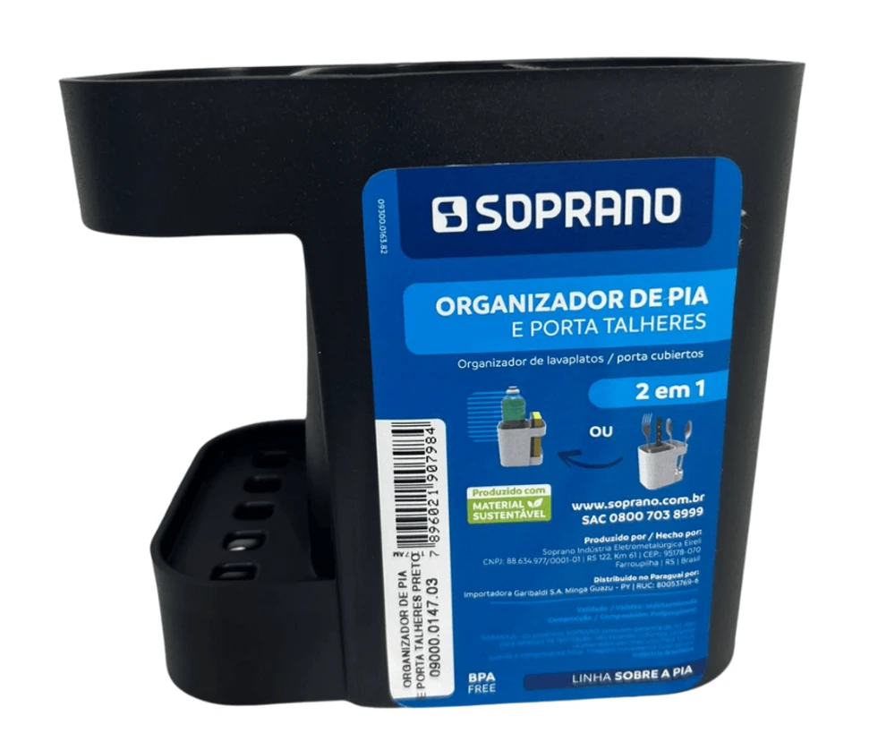 Contendo dispenser com dosador e suporte para esponja, Escorredor de louças espaçoso e funcional e o porta talheres com dois compartimentos.