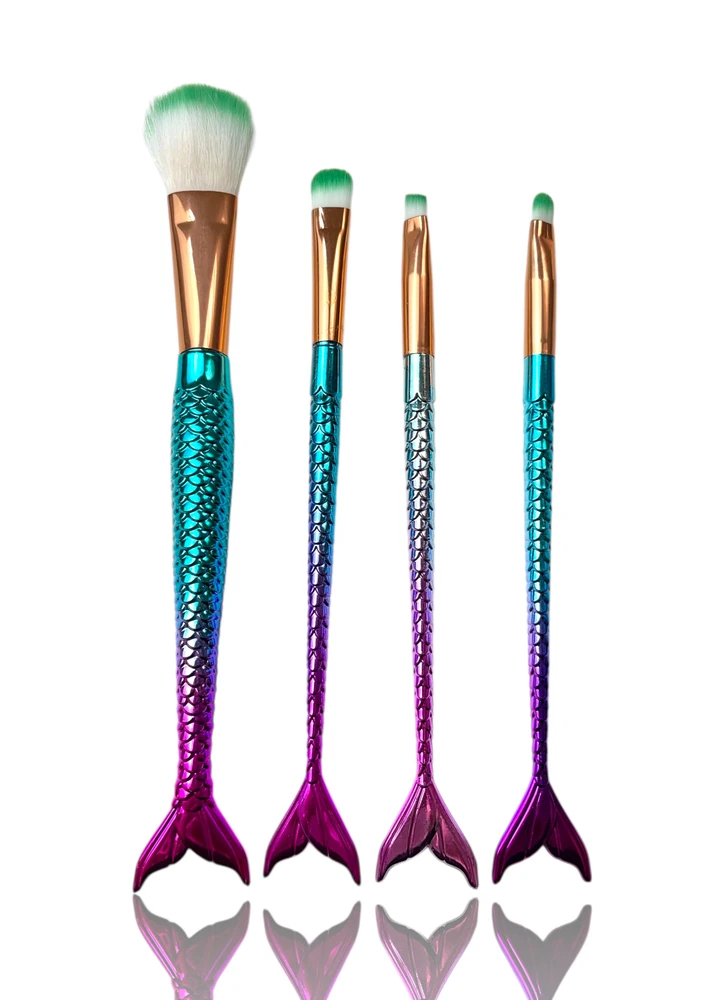 O Kit de Pincéis Sereia é perfeito para quem ama maquiagem com beleza, brilho e praticidade. Com cabos em formato de cauda de sereia, acabamento metálico e cerdas macias, o conjunto traz todas as ferramentas essenciais para uma make completa — desde a pele até os olhos.