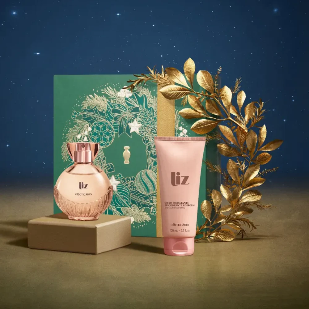 O Kit Presente Natal Liz é ideal para mulheres autênticas e sofisticadas, que valorizam fragrâncias marcantes e elegantes. Ele traz dois itens de autocuidado — Desodorante Colônia e Creme Hidratante Corporal — embalados em uma caixa especial 100% reciclável com detalhes dourados e design natalino encantador.
