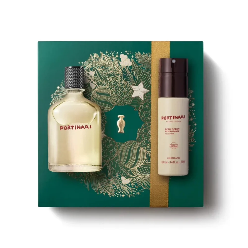 Inspirado em Cândido Portinari, o Kit Presente Natal Portinari é a escolha ideal para surpreender com elegância e arte neste Natal. Vem com dois itens de perfumação — Desodorante Colônia e Body Spray — embalados em uma caixa especial reciclável, com detalhes dourados que remetem à magia natalina.