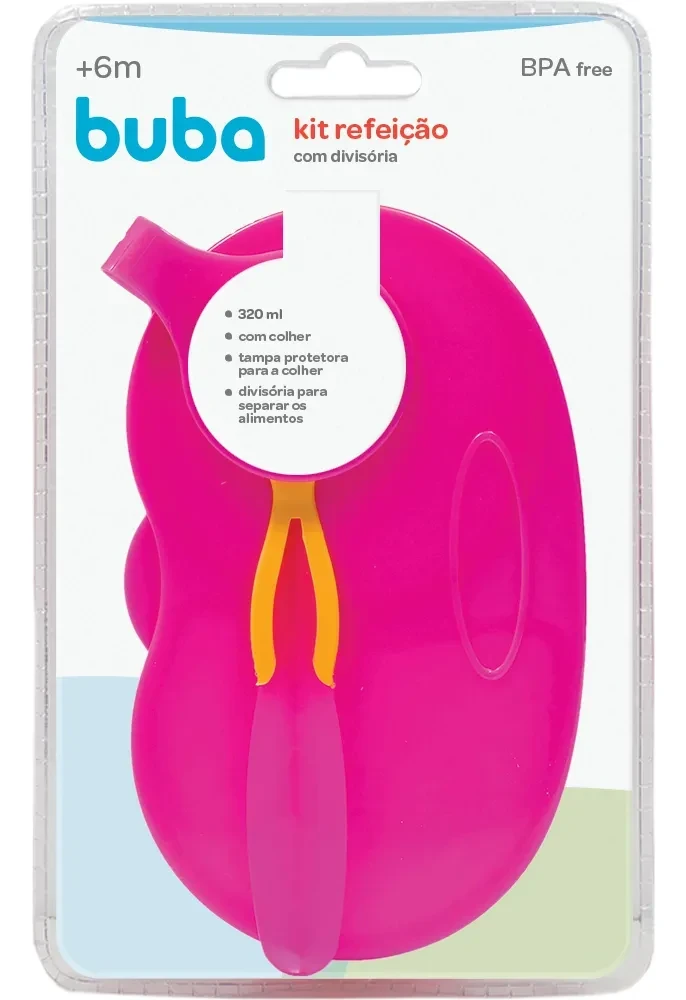 O Kit Refeição com Divisória da Buba foi pensado para tornar a hora da alimentação mais prática e divertida! Com design funcional, o pratinho com divisórias permite separar os alimentos, incentivando a autonomia e o apetite dos pequenos. Acompanha talheres com cantos arredondados, ideais para as mãozinhas em fase de desenvolvimento. Tudo com o toque delicado da cor rosa que encanta as crianças.