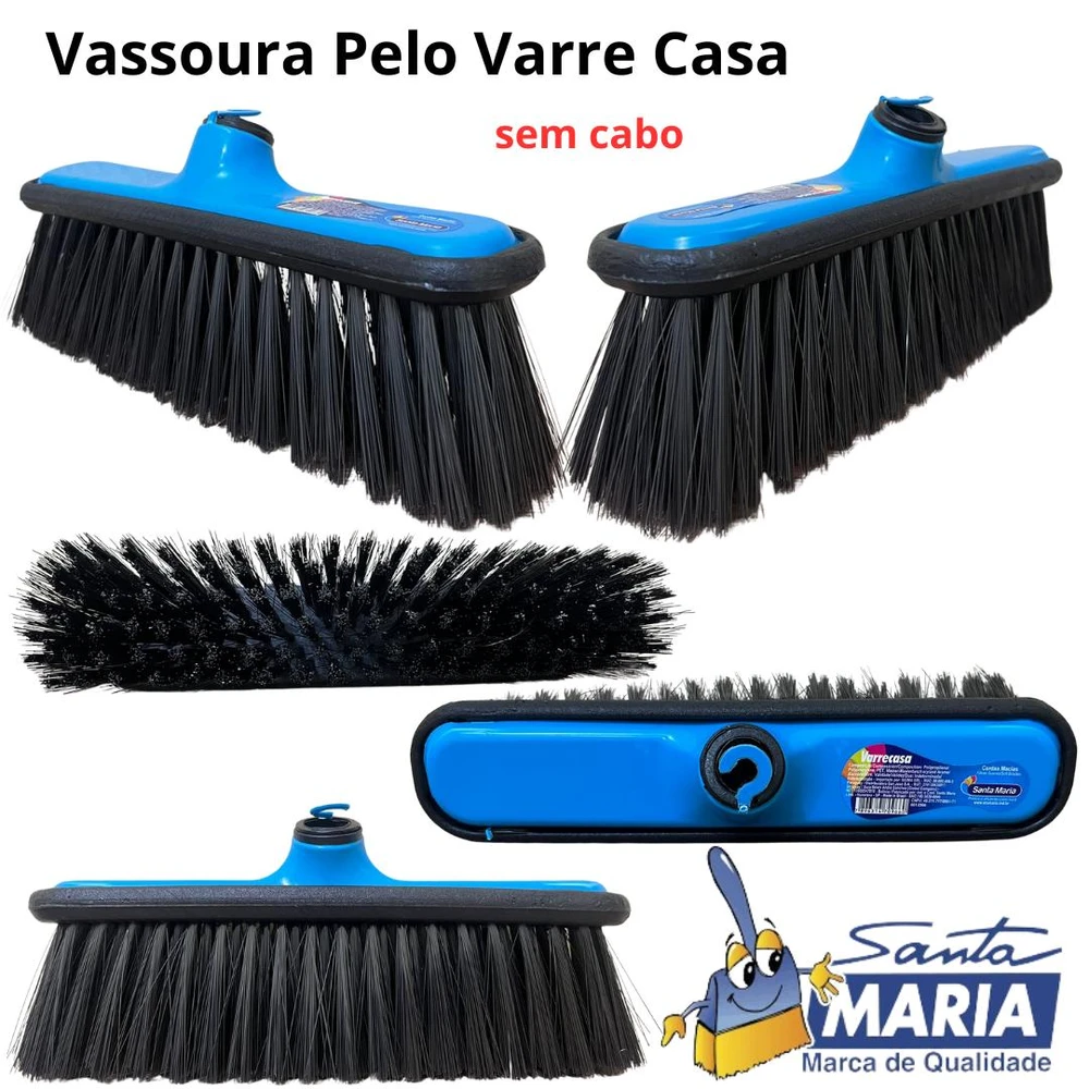 LAVA CASA : Com a funcionalidade de ser uma vassoura esfregão, suas cerdas são mais duras para facilitar a limpeza de ambientes externos com pisos rústicos, pedras e acimentados. Possui cabo em aço, cerdas mais resistentes feitas em PET 100% reciclado e ecologicamente correta, e conta com a nova ponteira para cabos Santa Maria ? um sistema tecnológico que permite maior resistência e segurança, evitando quebras e oxidação do material.