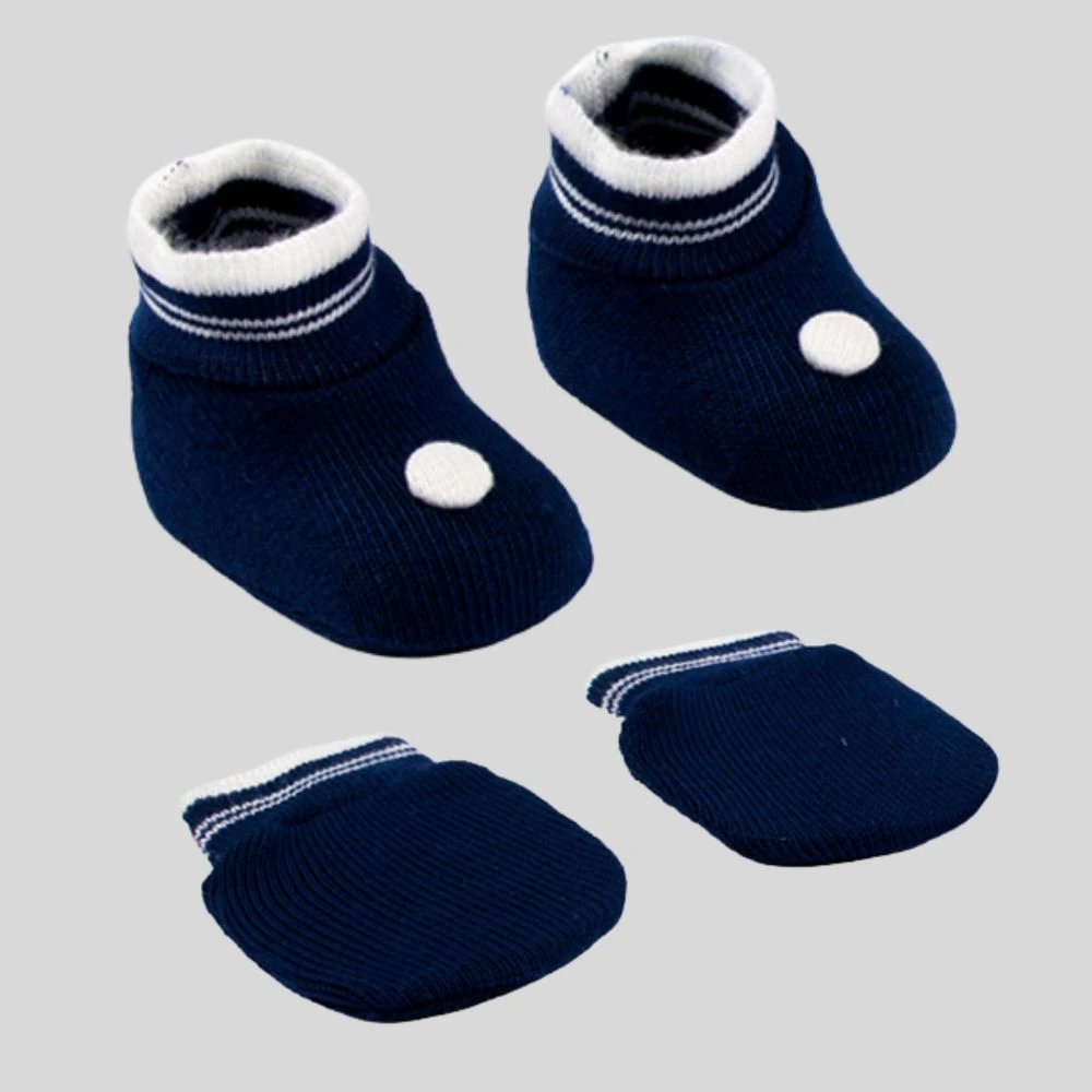 Confeccionado em tricô macio e respirável, este conjunto azul marinho proporciona aquecimento suave e proteção contra o frio, garantindo bem-estar absoluto para recém-nascidos.