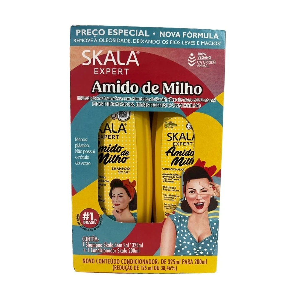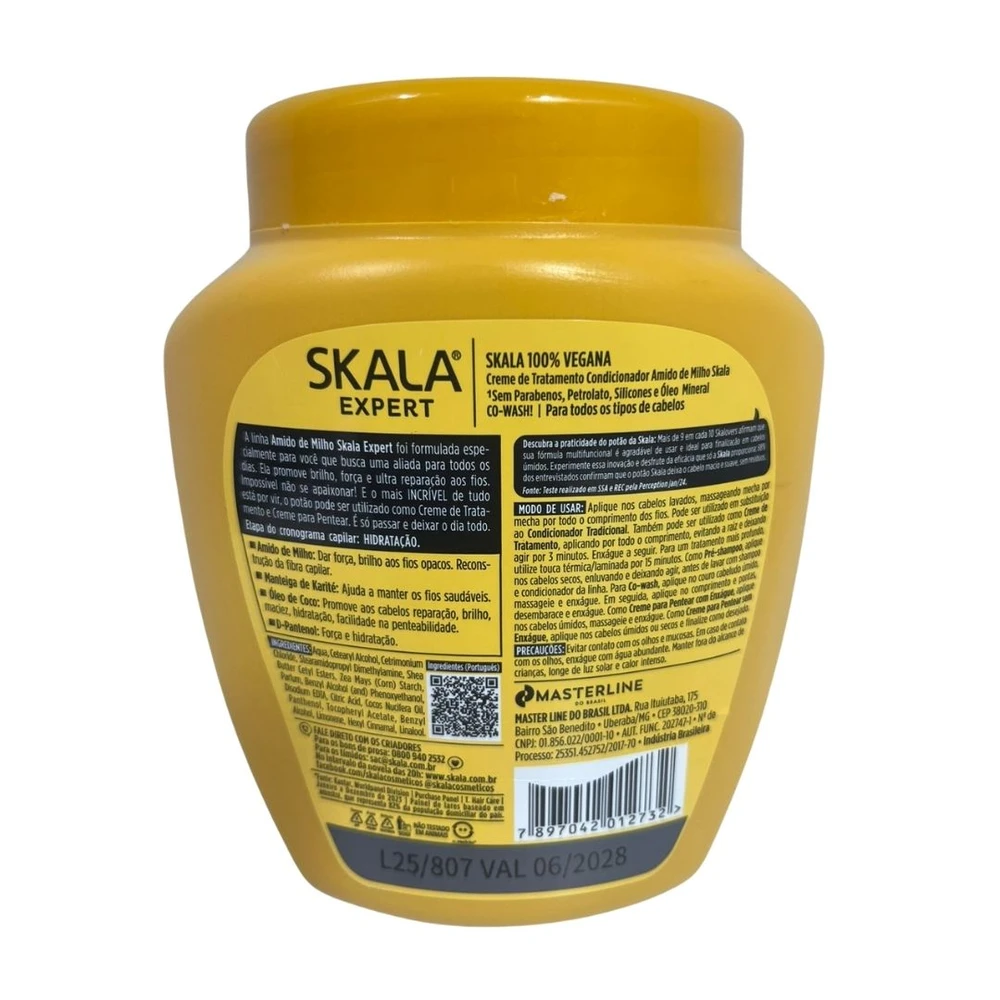 MODO DE USAR: Após higienizar os fios com o Shampoo Amido de Milho, aplique o Condicionador uniformemente sobre o cabelo limpo e úmido. Deixe agir por 1 a 3 minutos e, em seguida, enxágue. Finalize como desejar. Para um melhor resultado utilize a linha completa Amido de Milho Skala Expert. Escolha um dos rituais de uso: Curvaturas 1, 2ABC: indicamos a aplicação no comprimento dos fios, evitando a raiz, deixando agir por 3 minutos. Enxágue. Curvaturas 3ABC e 4ABC: caso o fio esteja ressecado, use como PRÉ SHAMPOO. Com os cabelos sem lavar, dívida mecha por mecha, aplique e enluve os fios deixando agir, enxágue e prossiga lavando com shampoo e condicionador. CO WASH: A nossa fórmula possui agentes emolientes que são capazes de promover limpeza aos fios. Indicado para fios crespos, cacheados e fios sensibilizados por químicas e tinturas. Com os cabelos completamente molhados, coloque uma pequena quantidade nas palmas das mãos e distribua por todo o couro cabeludos. Massageie suavemente o couro cabeludo com a ponta dos dedos como se fosse um shampoo convencional. Enxágue. A seguir adicione uma quantidade do produto no comprimento e pontas, desembarace cuidadosamente os cabelos com o auxílio dos dedos e enxágue bem. Repita a operação somente se sentir necessidade de uma maior limpeza do couro cabeludo.