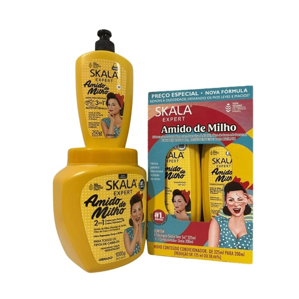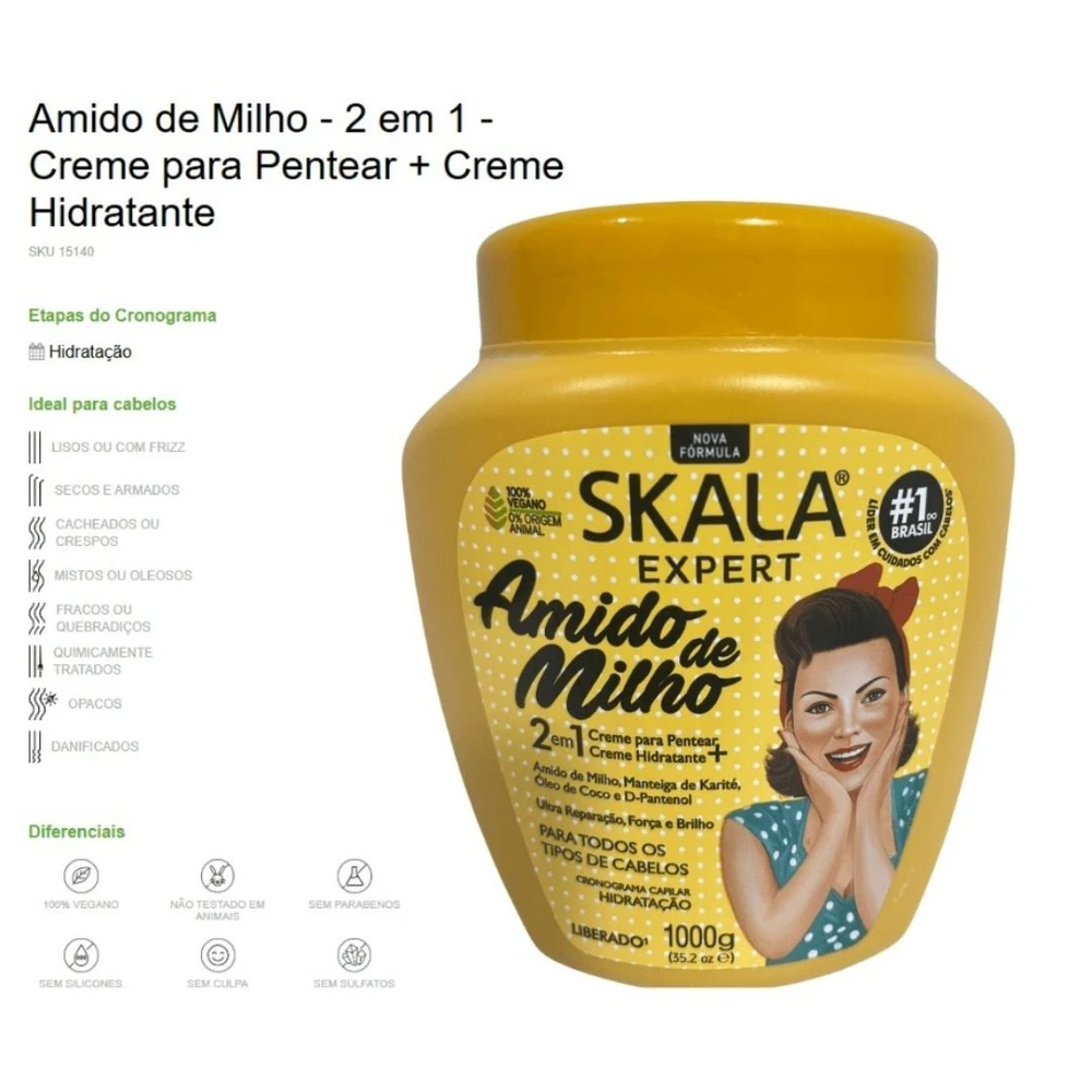 Sabe aquele creme de tratamento que você vai usar em todas as lavadas? É esse! Impossível não se apaixonar! O Amido de Milho foi formulado especialmente para você que busca um aliado para todos os dias. Esse potão é ultra reparador, ajuda a fortalecer e dar brilho aos fios. E o mais INCRIVÉL de tudo está por vir, pode ser utilizado como Creme de Tratamento e Creme para Pentear. É só passar e deixar o dia todo. Sua fórmula é livre de Sulfatos, Parabenos, Silicones, Petrolato e Óleo Mineral. #SkalaApaixonadaPorAnimais é *Vegano: não possui ingredientes de origem animal. Não é um máximo esse conceito de INOVAÇÃO da Skala? Desenvolvido especialmente para você que ama os animais e a técnica do liberado!