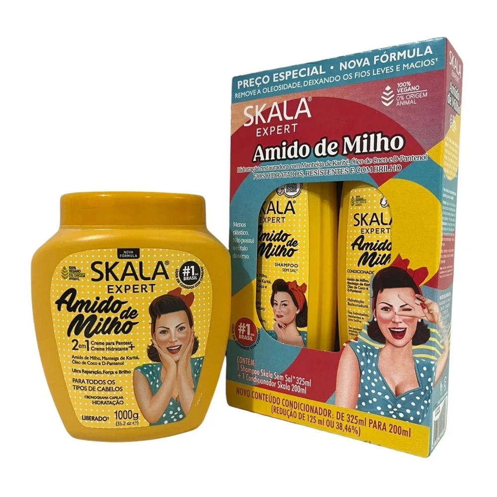 Skala Mini Creme 3 em 1 - Máscara de tratamento com protetor térmico e hidratante diurno – sem enxágue Amido de Milho