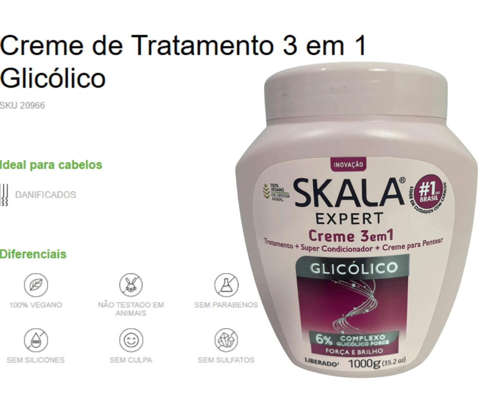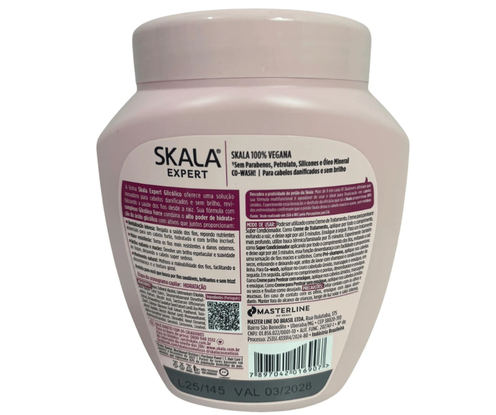 A linha Glicólico Skala Expert oferece uma solução inovadora para cabelos danificados e sem brilho, revitalizando a saúde dos fios desde a raiz. Sua fórmula com complexo Glicólico Force combina o alto poder de hidratação do ácido glicólico com ativos que juntos proporcionam: