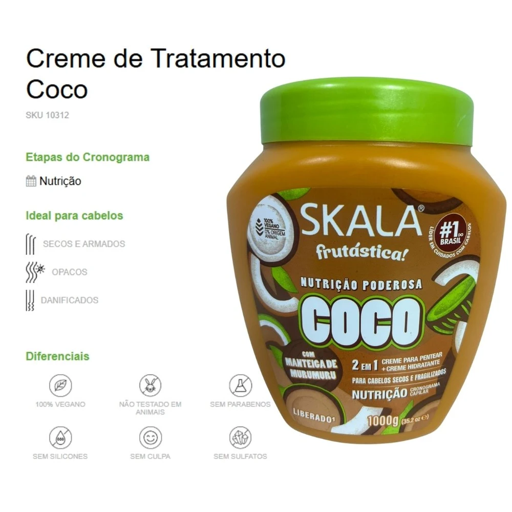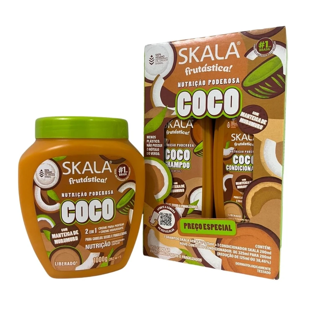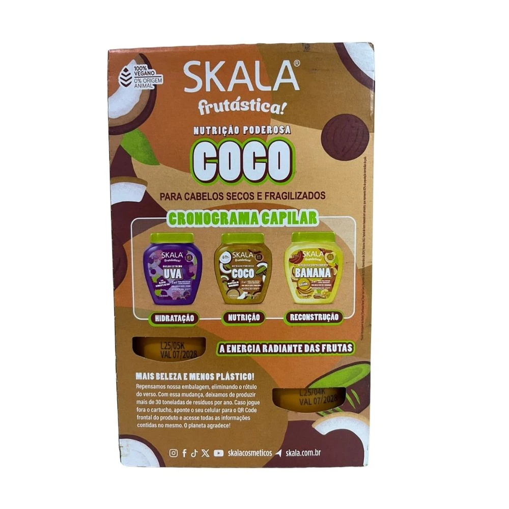 Experimente Skala Frutástica enriquecida com Óleo de Coco para uma nutrição poderosa nos fios! A fórmula ainda conta com a combinação das Manteigas de Murumuru e Karité, que juntas revitalizam os cabelos, enquanto o aroma irresistível de coco proporciona uma viagem sensorial única. Dê um upgrade nos seus fios com Skala Frutástica!