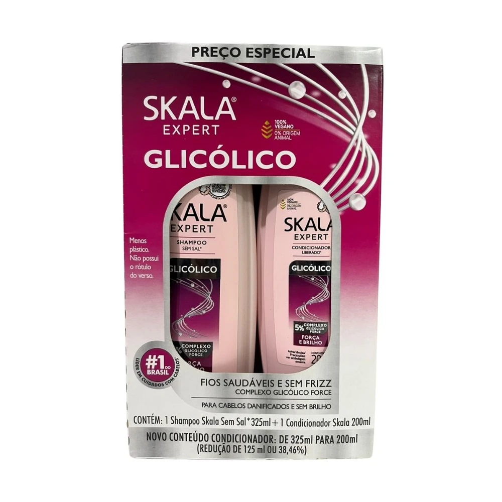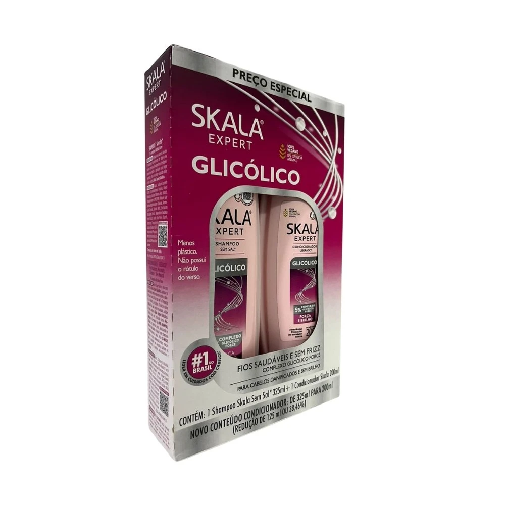 A linha Skala Expert Glicólico oferece uma solução inovadora para cabelos danificados e sem brilho, revitalizando a saúde dos fios desde a raiz. Sua fórmula com complexo Glicólico Force combina o alto poder de hidratação do ácido glicólico com ativos que juntos proporcionam: