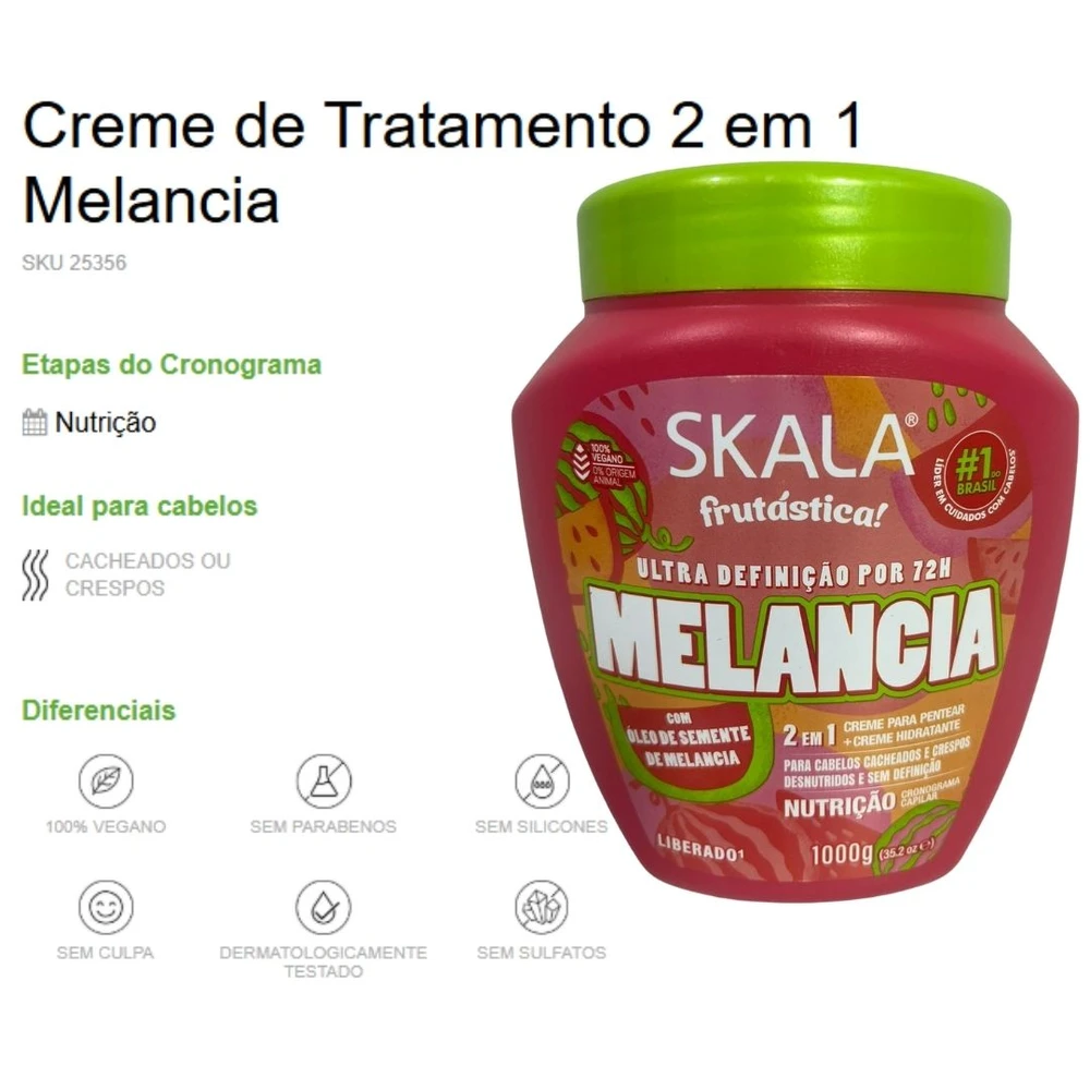 Mergulhe na refrescância da Melancia para revitalizar seus cachos, proporcionando nutrição, definição e um aroma irresistível! Em sua fórmula contém Óleo de Semente de Melancia para maciez, Óleo de Argan para brilho e Vitaminas A e C para fortalecimento. Uma experiência sensorial única para deixar seus cachos radiantes e prontos para arrasar.