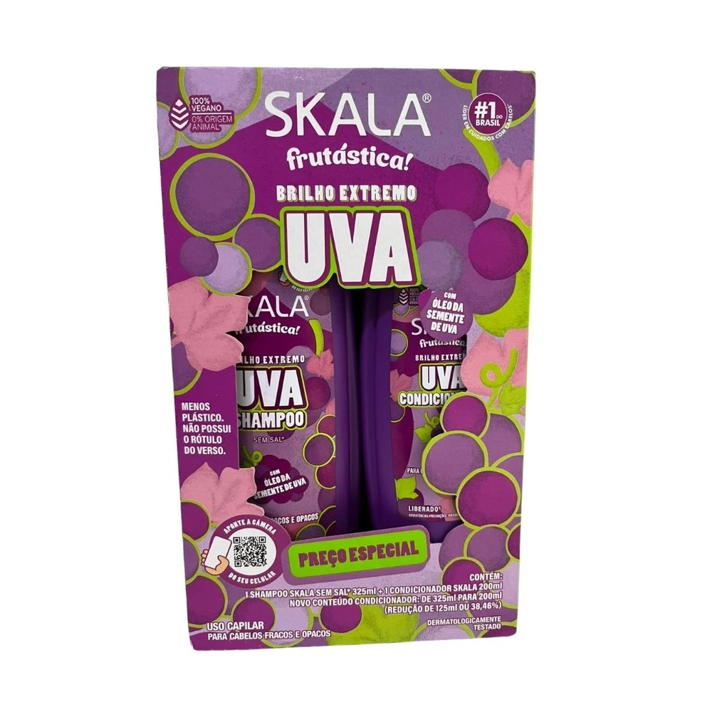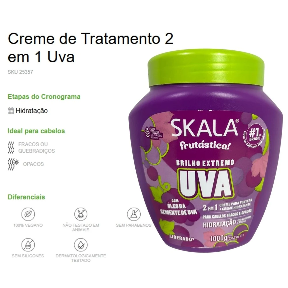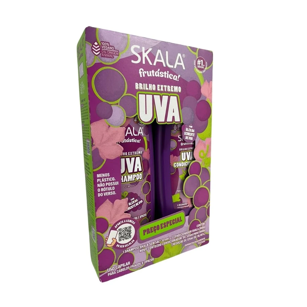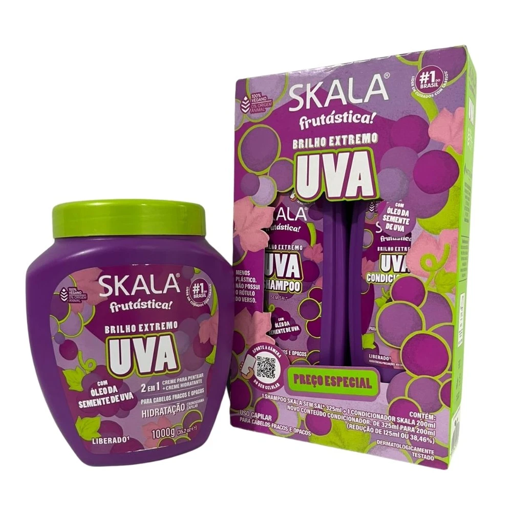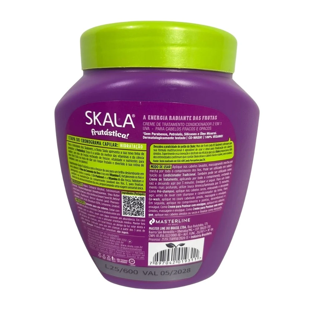 Experimente Skala Frutástica com o frescor da uva para um brilho deslumbrante em seus cabelos! O Óleo de semente de uva é rico em vitamina E, fortalecendo os fios e protegendo contra a queda. O D-pantenol e a Vitamina A dão força, hidratam e auxiliam na manutenção do comprimento saudável dos fios. E, para finalizar, desfrute do aroma irresistível da uva, proporcionando uma viagem sensorial única.