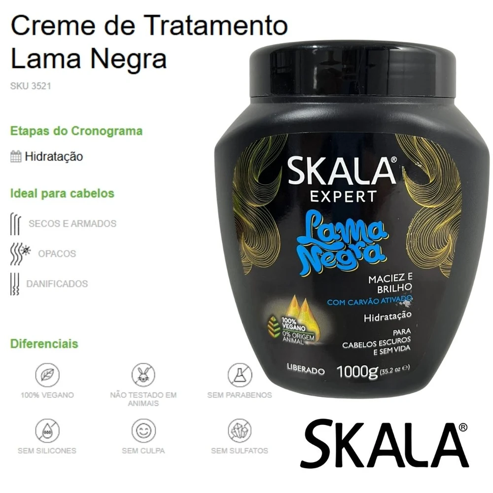 O Creme de Tratamento Skala Lama Negra, enriquecido com vitamina E e D'Panthenol, possui propriedades revigorantes que são ideais para o tratamento dos cabelos escuros e sem vida, deixando os cabelos muito mais sedosos e brilhantes.
