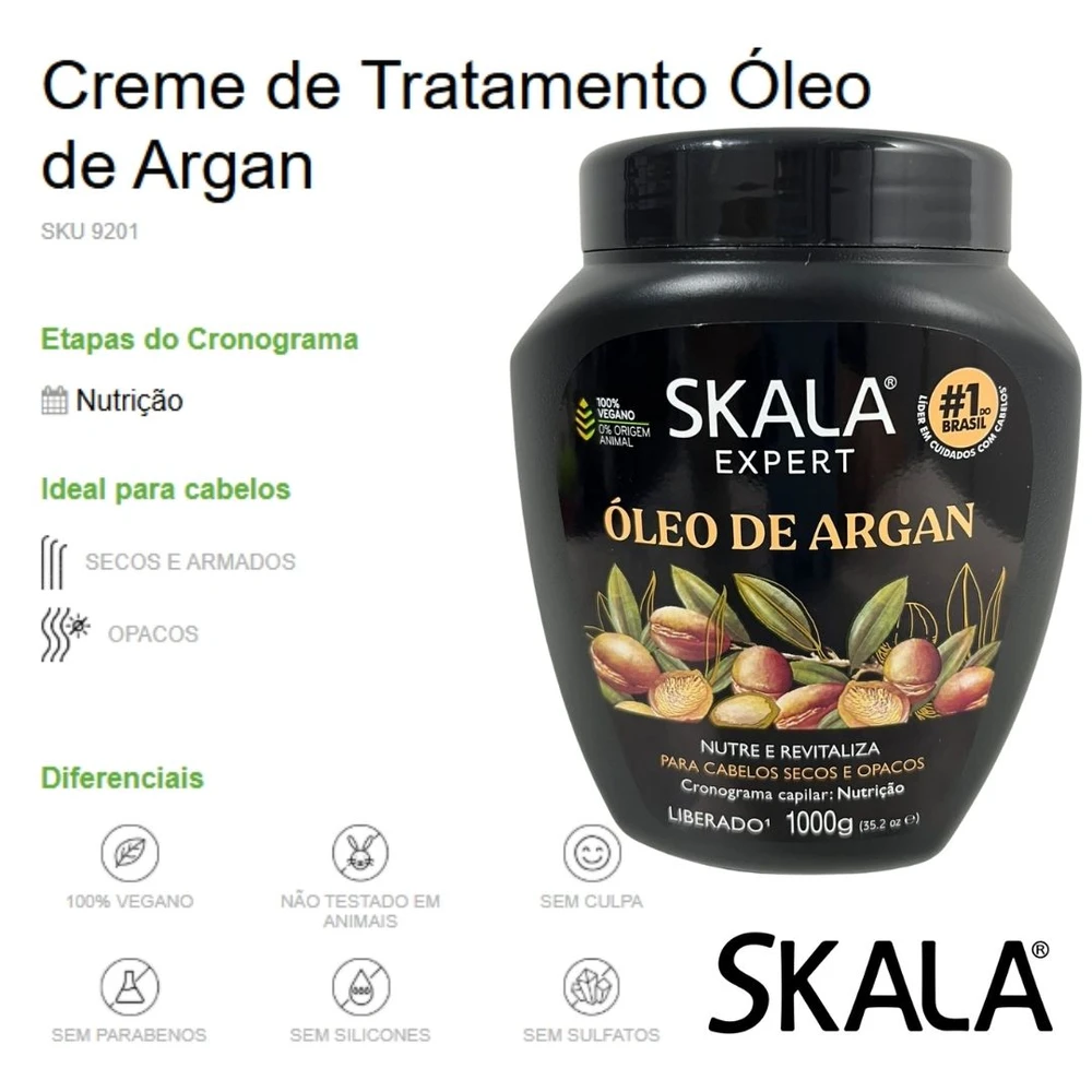 A linha Skala Óleo de Argan ajuda a promover uma reparação profunda. Nutre e revitaliza a fibra capilar, dando um brilho incrível e natural aos fios secos e opacos. O resultado é surpreendente: cabelos de dar inveja! Recomendamos que use e abuse dessa linha!