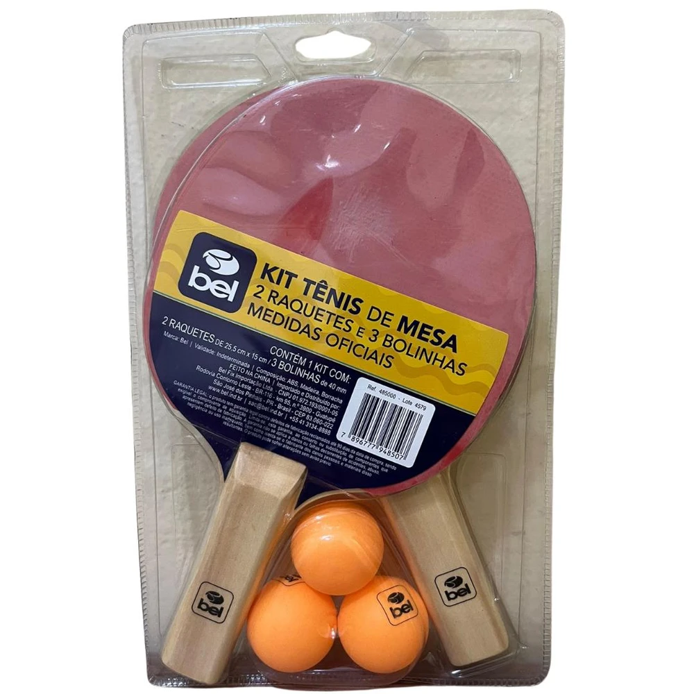 O Kit Tênis de Mesa 2 Raquetes + 3 Bolinhas BEL é ideal para a iniciação ao tênis de mesa ou ping-pong mais popularmente conhecido. Com este kit você conseguirá dominar os primeiros efeitos do esporte!Informações:· Contém 2 raquetes em madeira com revestimento em EVA· Material suave que proporciona um melhor controle da bolinha· Acompanha 3 bolinhas de 40mm
