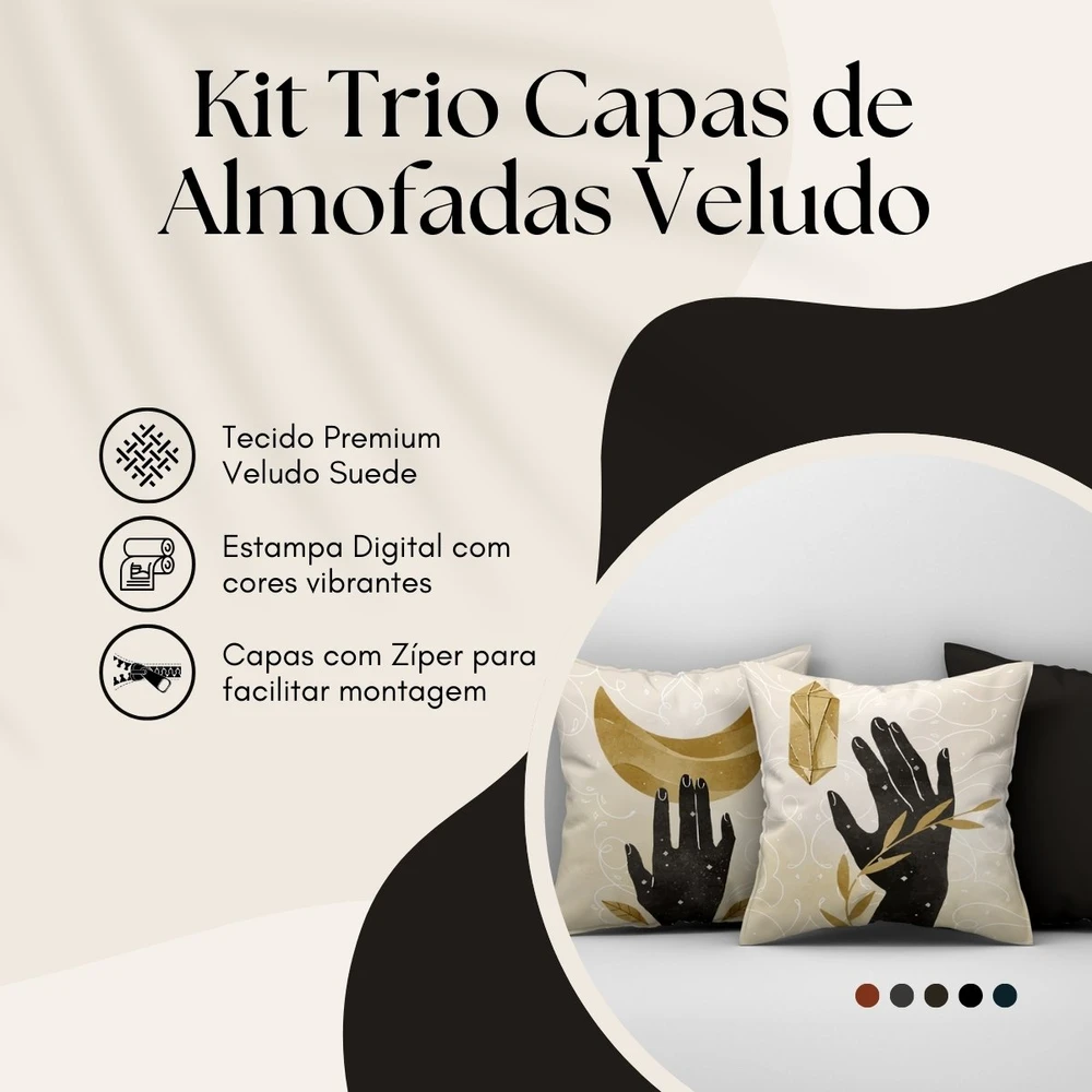 Introduzindo nosso novo Kit Trio de Capas de Almofadas, uma opção sofisticada para transformar a decoração da sua sala. Este conjunto exala elegância e conforto, apresentando três capas de almofadas cuidadosamente projetadas, cada uma medindo 45cm x 45cm. O tecido em veludo suede de alta qualidade proporciona uma sensação suave ao toque, criando uma atmosfera aconchegante e luxuosa em seu espaço. O kit inclui uma combinação de capas estampadas e lisa, oferecendo versatilidade na personalização da sua decoração, todas as capas acompanhadas com zíper, facilitando a montagem e a lavagem. As estampas, elaboradas com detalhes refinados, adicionam um toque de estilo e vivacidade, enquanto a capa lisa proporciona uma base elegante e atemporal. A qualidade duradoura do material garante resistência e durabilidade, tornando este kit uma escolha ideal para realçar o visual da sua sala de estar. Seja para realçar um sofá, poltrona ou cama, esse Kit oferece uma solução completa para aprimorar o charme do seu ambiente. Transforme sua casa em um refúgio acolhedor com este conjunto versátil e estilizado, proporcionando um toque de sofisticação que será apreciado por todos os que compartilham o seu espaço. Confira!