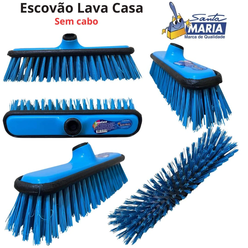 LAVA CASA : Com a funcionalidade de ser uma vassoura esfregão, suas cerdas são mais duras para facilitar a limpeza de ambientes externos com pisos rústicos, pedras e acimentados. Possui cabo em aço, cerdas mais resistentes feitas em PET 100% reciclado e ecologicamente correta, e conta com a nova ponteira para cabos Santa Maria ? um sistema tecnológico que permite maior resistência e segurança, evitando quebras e oxidação do material.