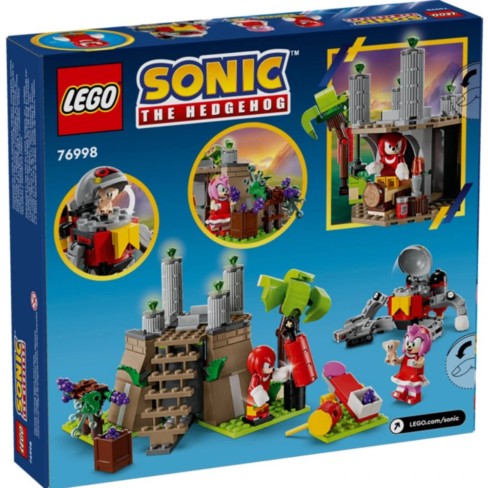 Fãs de videogames de 8 anos ou mais emocionam com aventuras e heróis neste conjunto montável Knuckles and the Master Emerald Shrine (76998). Este brinquedo colecionável LEGO Sonic the Hedgehog inclui um santuário com 4 Chaos Emeralds, os aposentos de Knuckles abaixo do santuário com uma área de exercícios, um piso giratório e videira, o martelo de Amy e uma catapulta para lançar uvas no Eggrobo. Este divertido presente para jogadores apresenta 4 personagens: minifiguras de Knuckles e Amy, um Eggrobo Badnik articulável com um jet pack e lançador de pinos e um Picky. Este conjunto de bonecos de ação do Sonic pode ser um brinquedo imaginativo que permite que os fãs criem histórias com Knuckles e Amy: desde malhar e colher uvas, até defender o santuário e as Chaos Emeralds, até relaxar com lanches após derrotar o Eggrobo e resgatar o Picky. A diversão de ação rápida encontra brincadeira independente com os brinquedos LEGO Sonic the Hedgehog. As crianças também têm uma aventura de construção intuitiva com o aplicativo LEGO Builder, onde podem aumentar o zoom e girar modelos, salvar conjuntos e acompanhar o progresso. Contém 325 peças.
