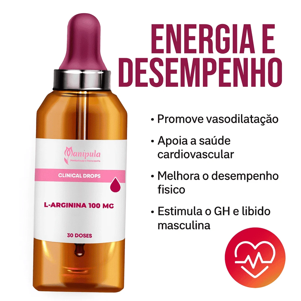 A L-Arginina 100 mg é um aminoácido semi-essencial que atua como precursor do óxido nítrico (NO), promovendo vasodilatação, melhora da circulação sanguínea, desempenho físico e saúde cardiovascular.